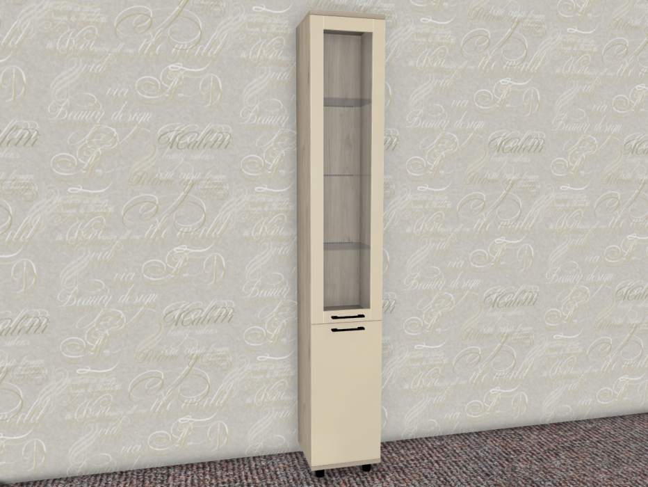 Интересная дизайнерская разработка со стеклянным фасадом и стеклянной боковой стенкой у витрин и антресольных секций стильно выделит интерьер уникальной композицией, а также позволит создавать уникальные буфетные варианты.