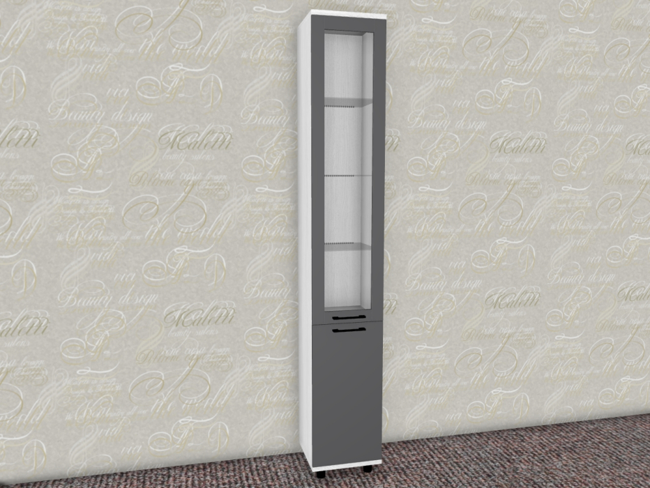 Интересная дизайнерская разработка со стеклянным фасадом и стеклянной боковой стенкой у витрин и антресольных секций стильно выделит интерьер уникальной композицией, а также позволит создавать уникальные буфетные варианты.