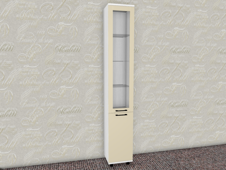 Интересная дизайнерская разработка со стеклянным фасадом и стеклянной боковой стенкой у витрин и антресольных секций стильно выделит интерьер уникальной композицией, а также позволит создавать уникальные буфетные варианты.