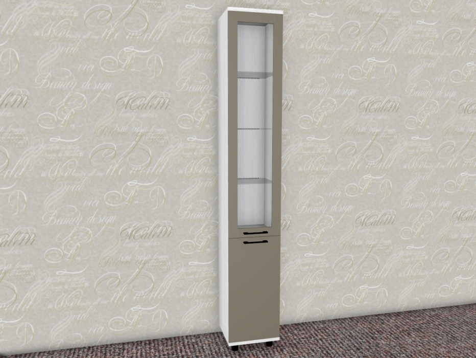 Интересная дизайнерская разработка со стеклянным фасадом и стеклянной боковой стенкой у витрин и антресольных секций стильно выделит интерьер уникальной композицией, а также позволит создавать уникальные буфетные варианты.