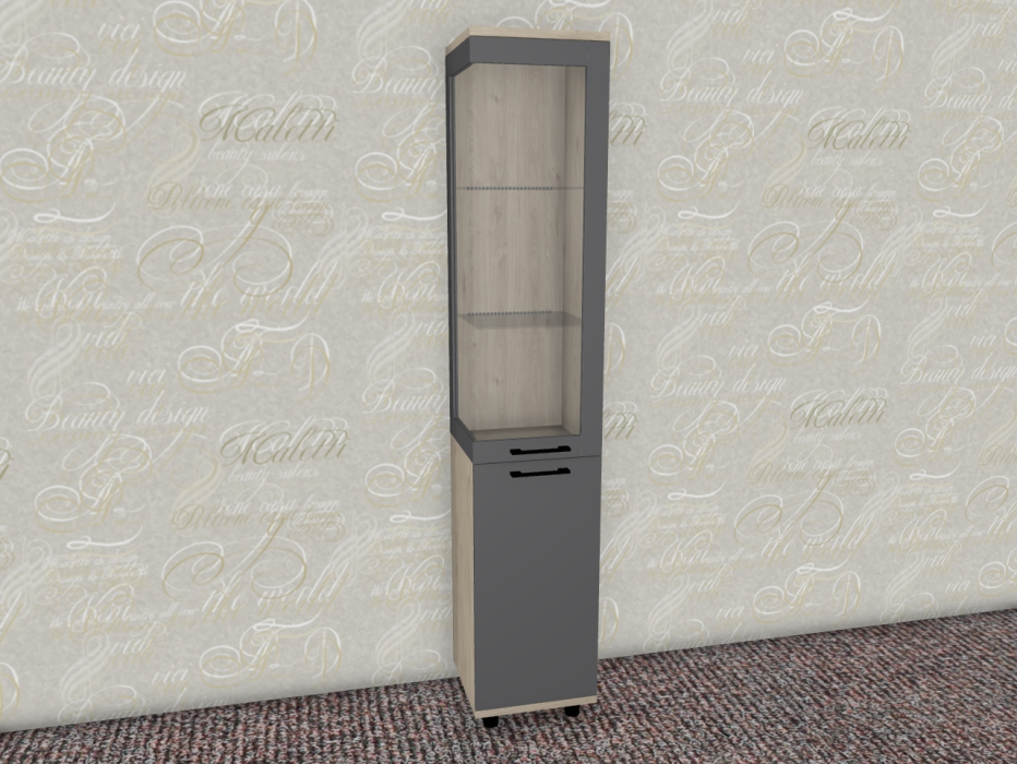 Интересная дизайнерская разработка со стеклянным фасадом и стеклянной боковой стенкой у витрин и антресольных секций стильно выделит интерьер уникальной композицией, а также позволит создавать уникальные буфетные варианты.