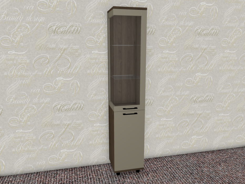 Интересная дизайнерская разработка со стеклянным фасадом и стеклянной боковой стенкой у витрин и антресольных секций стильно выделит интерьер уникальной композицией, а также позволит создавать уникальные буфетные варианты.