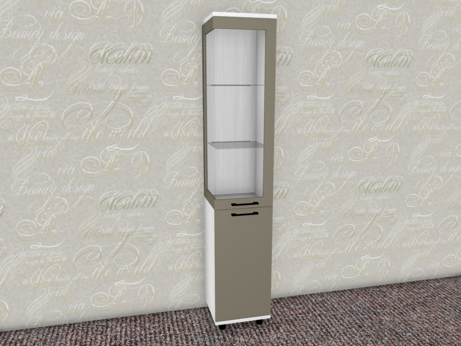 Интересная дизайнерская разработка со стеклянным фасадом и стеклянной боковой стенкой у витрин и антресольных секций стильно выделит интерьер уникальной композицией, а также позволит создавать уникальные буфетные варианты.