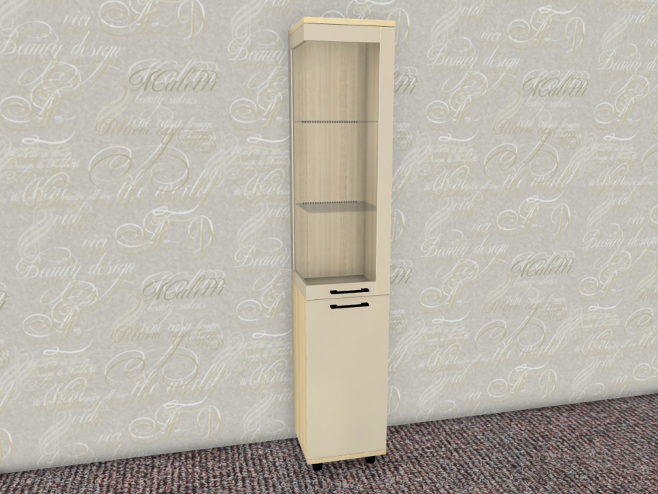 Интересная дизайнерская разработка со стеклянным фасадом и стеклянной боковой стенкой у витрин и антресольных секций стильно выделит интерьер уникальной композицией, а также позволит создавать уникальные буфетные варианты.