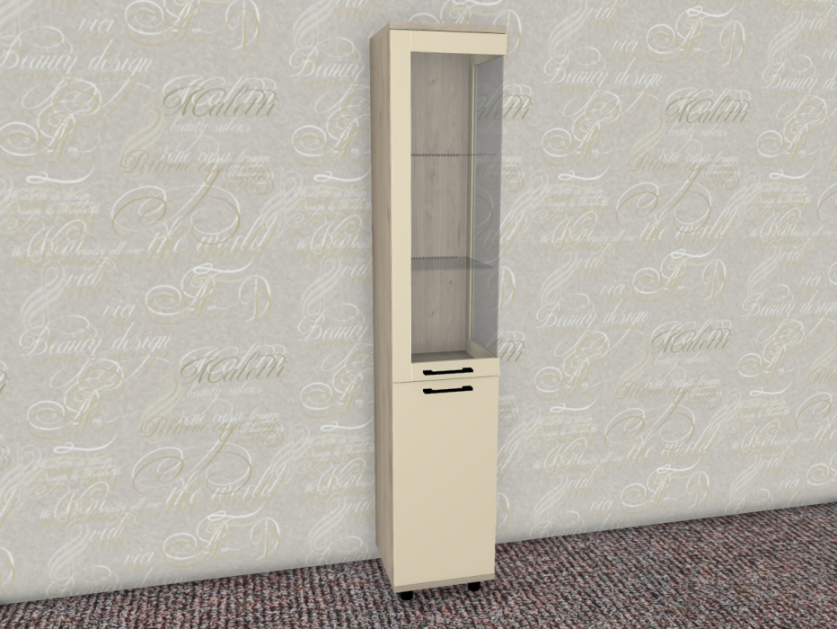 Интересная дизайнерская разработка со стеклянным фасадом и стеклянной боковой стенкой у витрин и антресольных секций стильно выделит интерьер уникальной композицией, а также позволит создавать уникальные буфетные варианты.