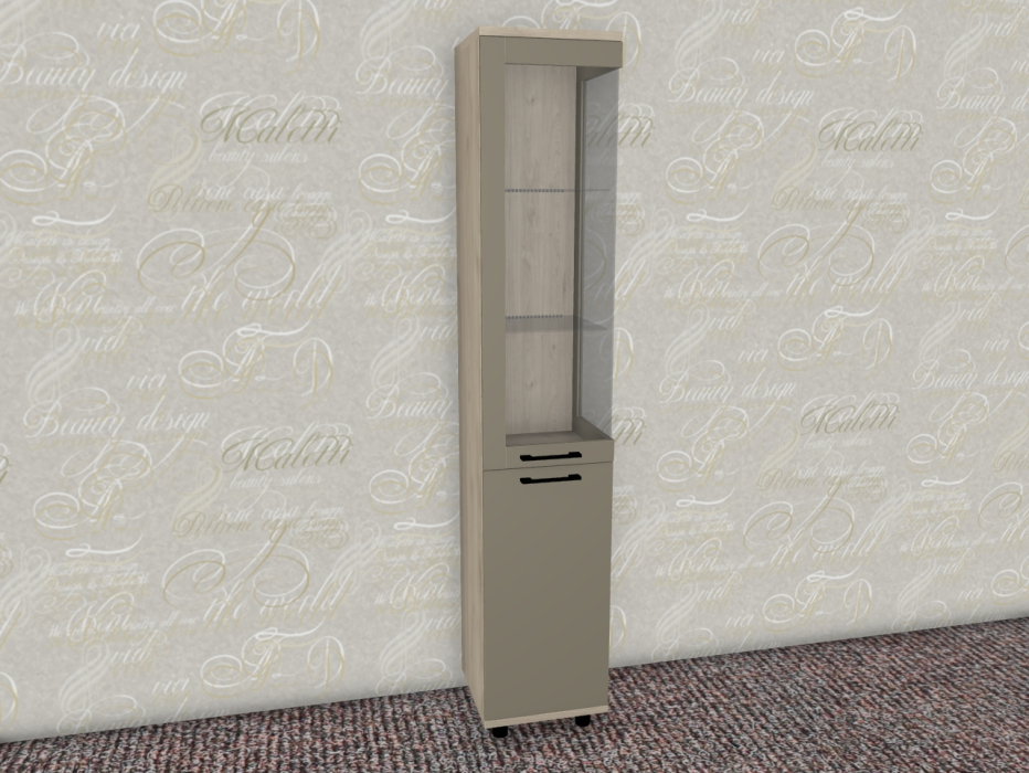 Интересная дизайнерская разработка со стеклянным фасадом и стеклянной боковой стенкой у витрин и антресольных секций стильно выделит интерьер уникальной композицией, а также позволит создавать уникальные буфетные варианты.