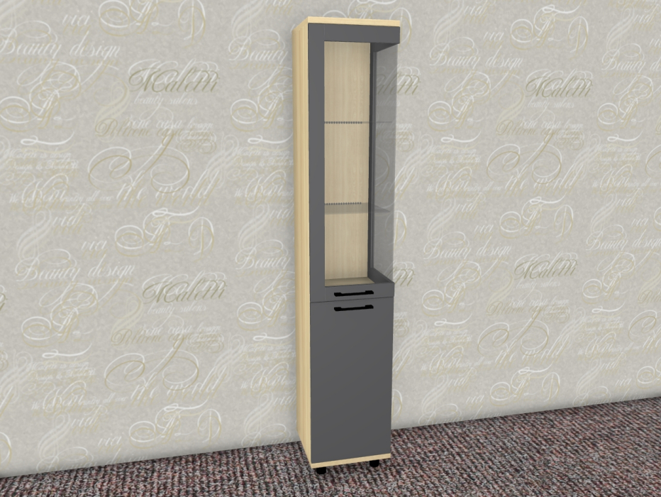 Интересная дизайнерская разработка со стеклянным фасадом и стеклянной боковой стенкой у витрин и антресольных секций стильно выделит интерьер уникальной композицией, а также позволит создавать уникальные буфетные варианты.