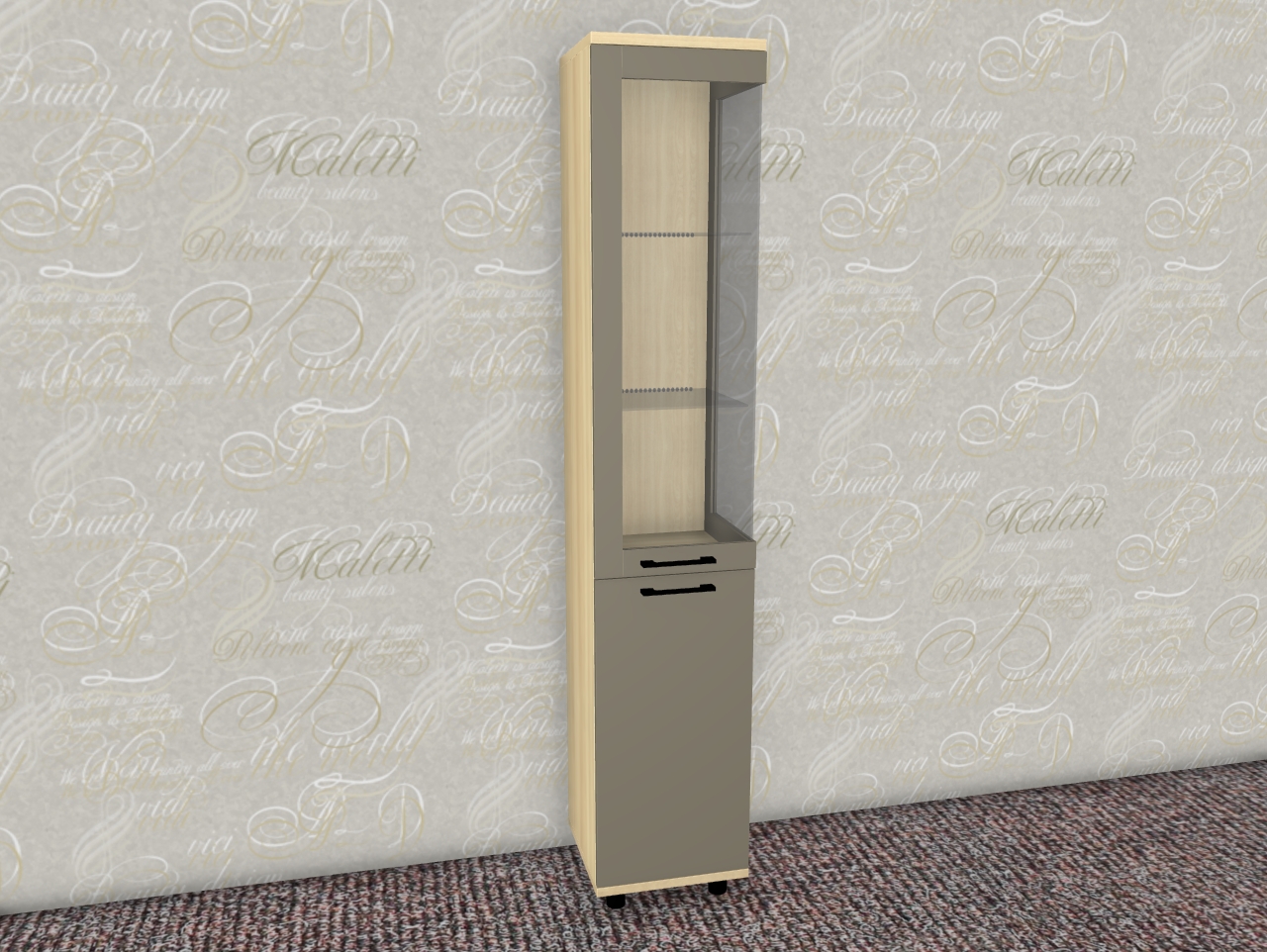 Интересная дизайнерская разработка со стеклянным фасадом и стеклянной боковой стенкой у витрин и антресольных секций стильно выделит интерьер уникальной композицией, а также позволит создавать уникальные буфетные варианты.