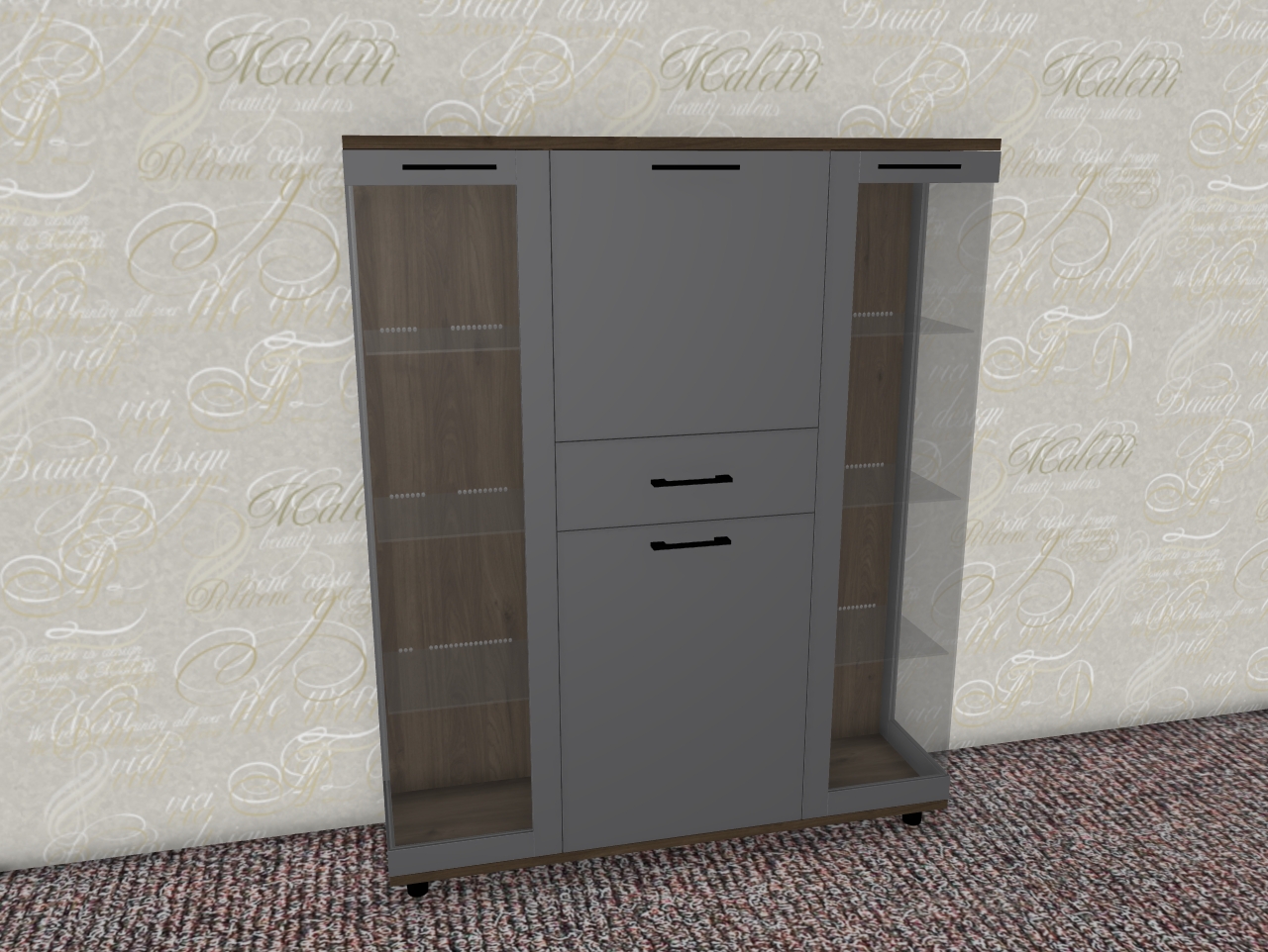 Интересная дизайнерская разработка со стеклянным фасадом и стеклянной боковой стенкой у витрин и антресольных секций стильно выделит интерьер уникальной композицией, а также позволит создавать уникальные буфетные варианты.