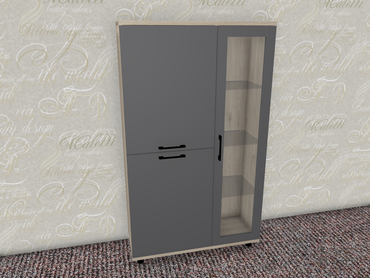 Интересная дизайнерская разработка со стеклянным фасадом и стеклянной боковой стенкой у витрин и антресольных секций стильно выделит интерьер уникальной композицией, а также позволит создавать уникальные буфетные варианты.