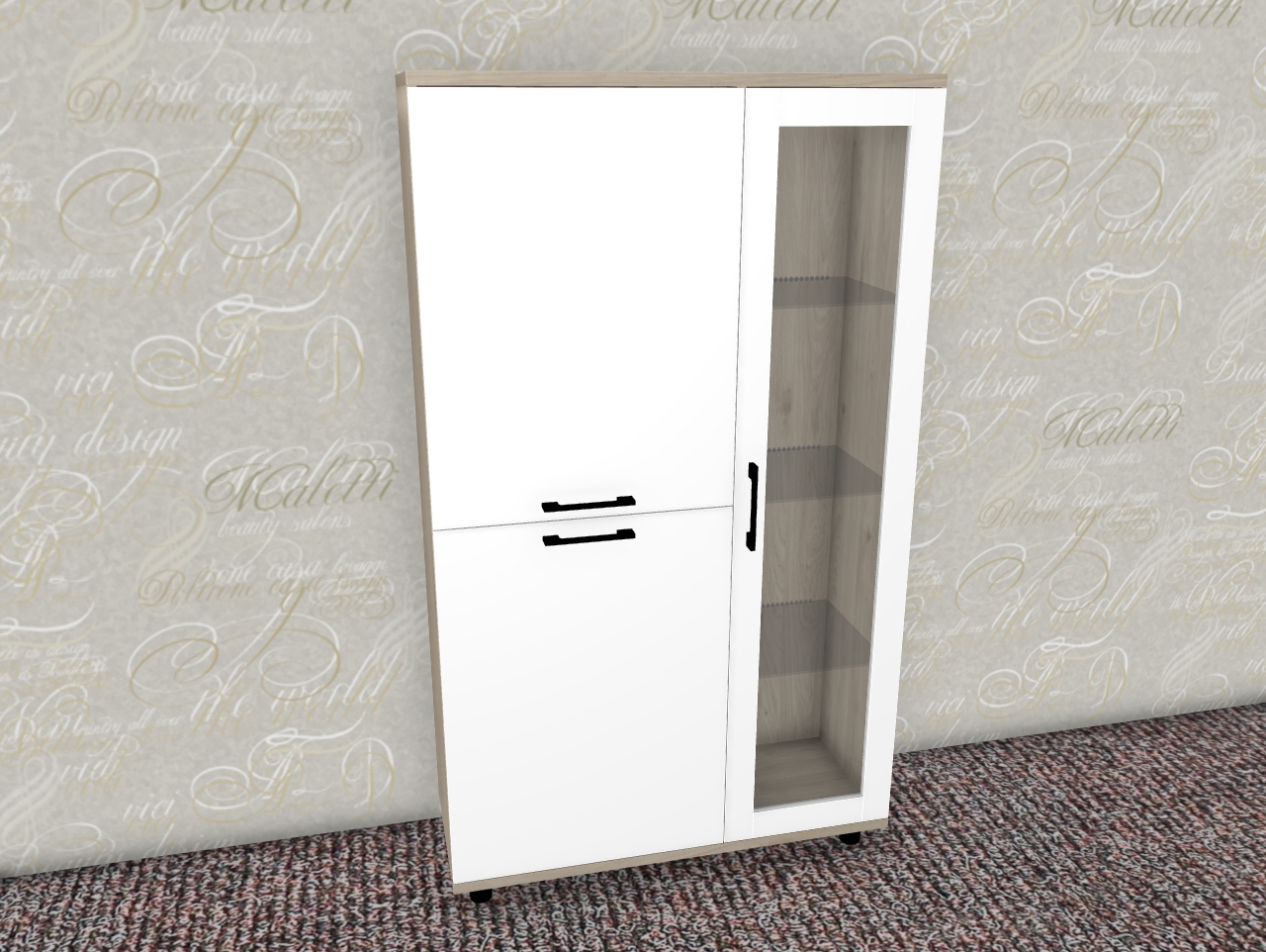 Интересная дизайнерская разработка со стеклянным фасадом и стеклянной боковой стенкой у витрин и антресольных секций стильно выделит интерьер уникальной композицией, а также позволит создавать уникальные буфетные варианты.