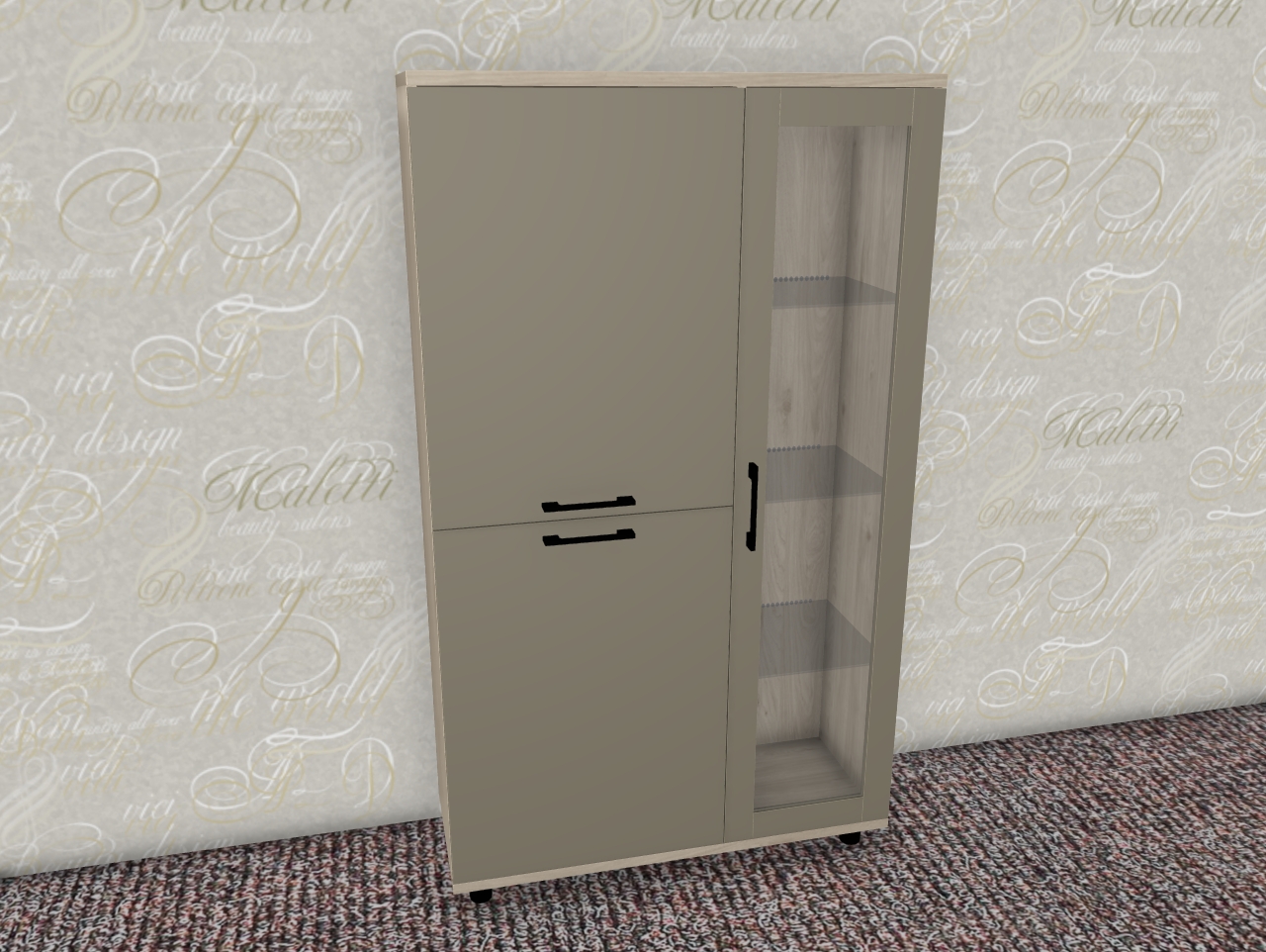 Интересная дизайнерская разработка со стеклянным фасадом и стеклянной боковой стенкой у витрин и антресольных секций стильно выделит интерьер уникальной композицией, а также позволит создавать уникальные буфетные варианты.