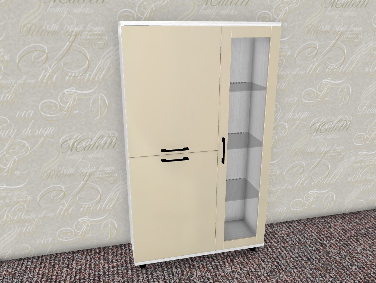 Интересная дизайнерская разработка со стеклянным фасадом и стеклянной боковой стенкой у витрин и антресольных секций стильно выделит интерьер уникальной композицией, а также позволит создавать уникальные буфетные варианты.