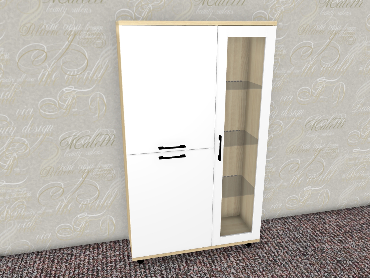 Интересная дизайнерская разработка со стеклянным фасадом и стеклянной боковой стенкой у витрин и антресольных секций стильно выделит интерьер уникальной композицией, а также позволит создавать уникальные буфетные варианты.