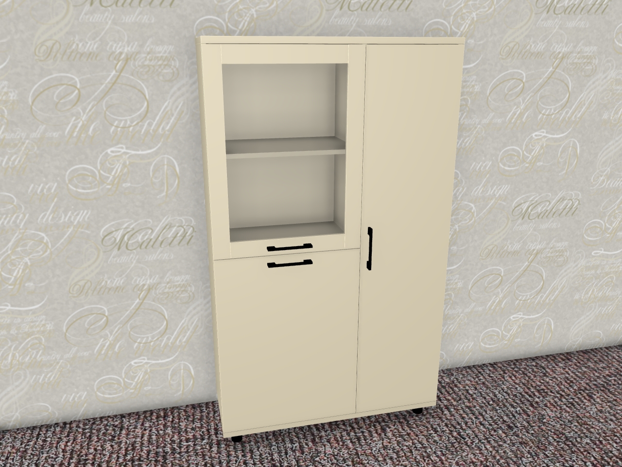 Интересная дизайнерская разработка со стеклянным фасадом и стеклянной боковой стенкой у витрин и антресольных секций стильно выделит интерьер уникальной композицией, а также позволит создавать уникальные буфетные варианты.