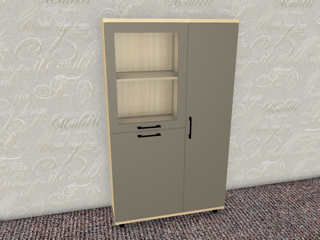 Интересная дизайнерская разработка со стеклянным фасадом и стеклянной боковой стенкой у витрин и антресольных секций стильно выделит интерьер уникальной композицией, а также позволит создавать уникальные буфетные варианты.
