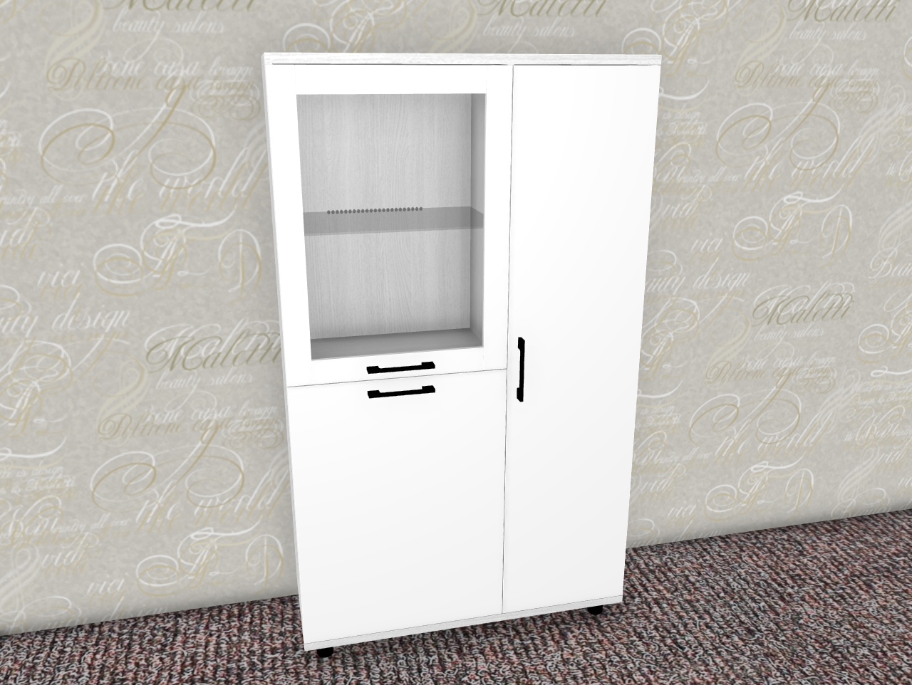 Интересная дизайнерская разработка со стеклянным фасадом и стеклянной боковой стенкой у витрин и антресольных секций стильно выделит интерьер уникальной композицией, а также позволит создавать уникальные буфетные варианты.