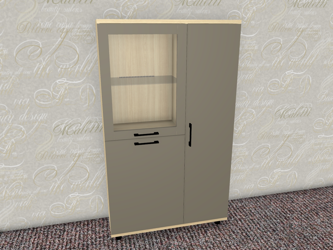 Интересная дизайнерская разработка со стеклянным фасадом и стеклянной боковой стенкой у витрин и антресольных секций стильно выделит интерьер уникальной композицией, а также позволит создавать уникальные буфетные варианты.