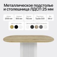 – трубчатое основание (подстолье) изготовлено из металла (высококачественная нержавеющая сталь) с устойчивой (двойной) порошковой окраской - 700х350мм, столешница - ЛДСП толщиной 25 мм
