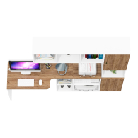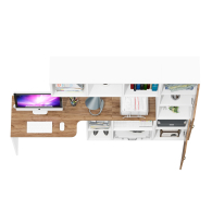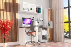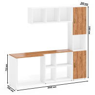 Комплектация включает стол трансформер письменный, полку открытую навесную и пенал две дверки и ниша.