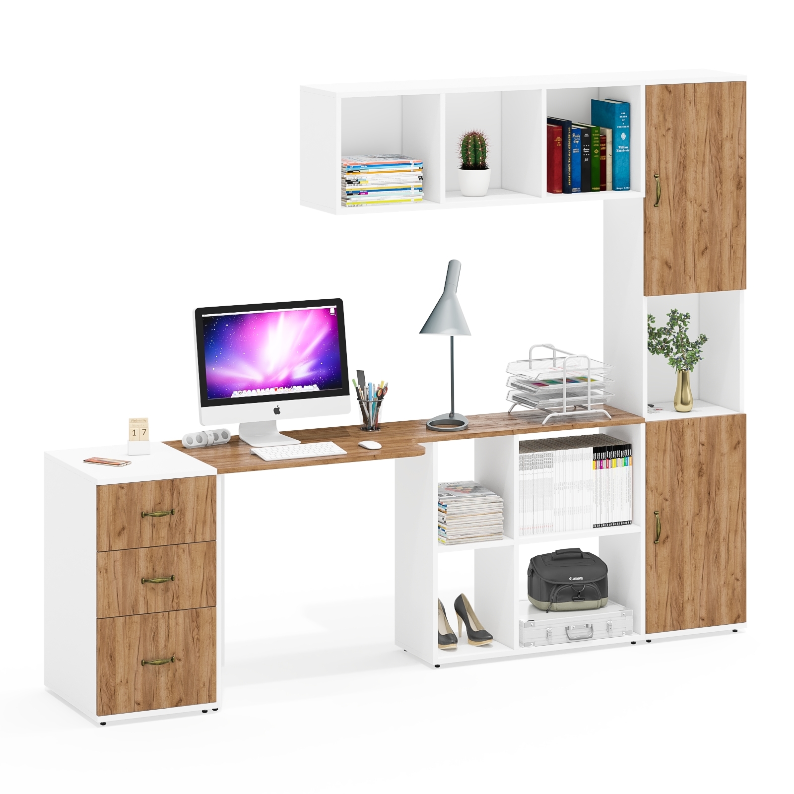Мебель в рабочий кабинет Лидер-8 из стола с полкой и пенала с тумбой с ящиками - современный и функциональный комплект, идеально подходящий для любого интерьера — это идеальный выбор для тех, кто ценит качество, стиль и функциональность.