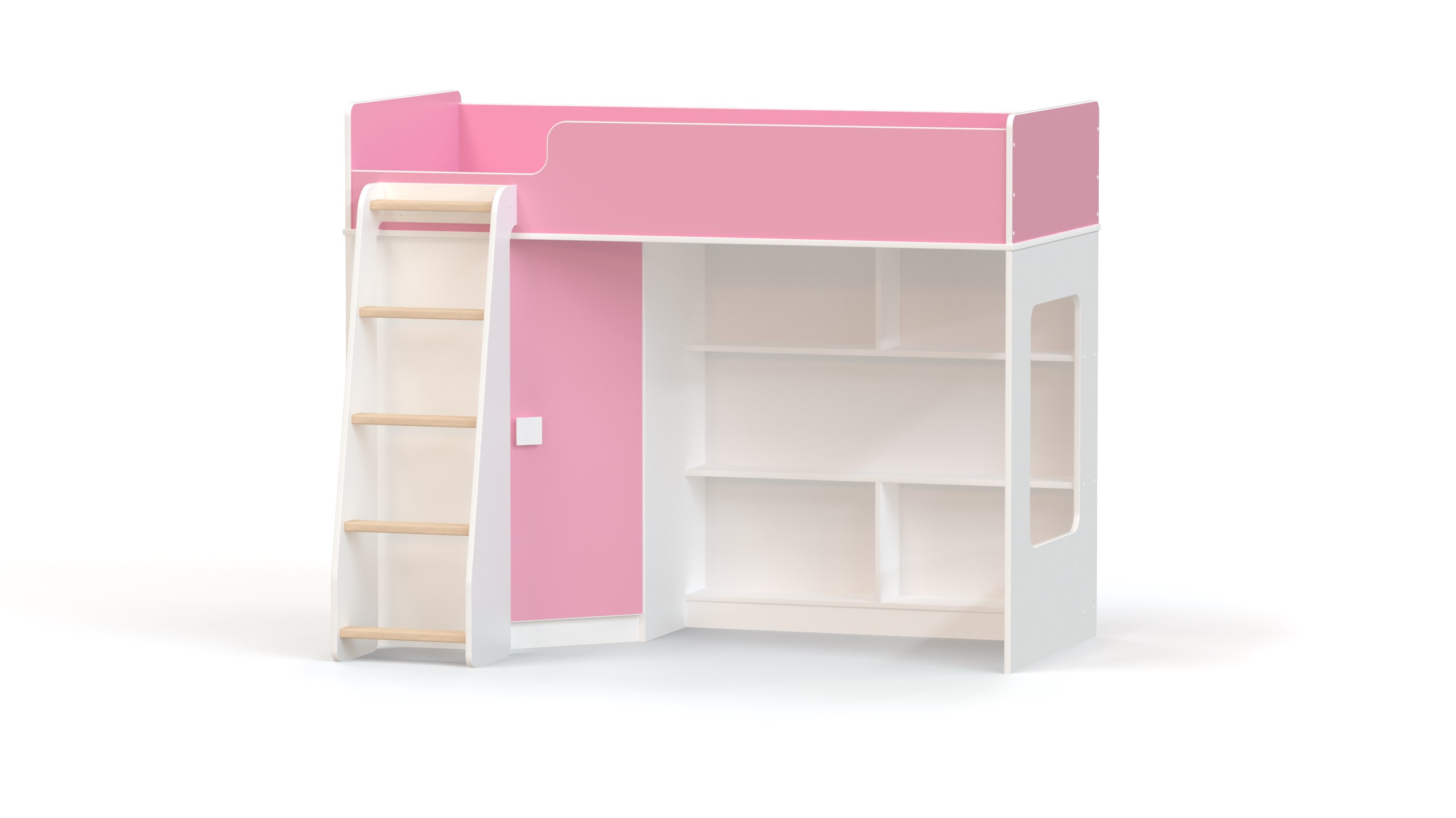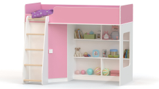 Кровать-чердак с угловым шкафом Ridgimmi 2.2 (Белый/Розовый)