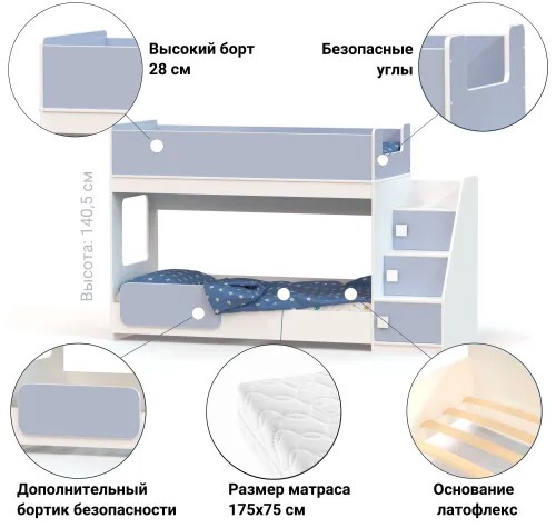 Отзывы о Столплит Кровать двухъярусная с угловой лестницей Ridgimmi 4.3 Белый/Голубой