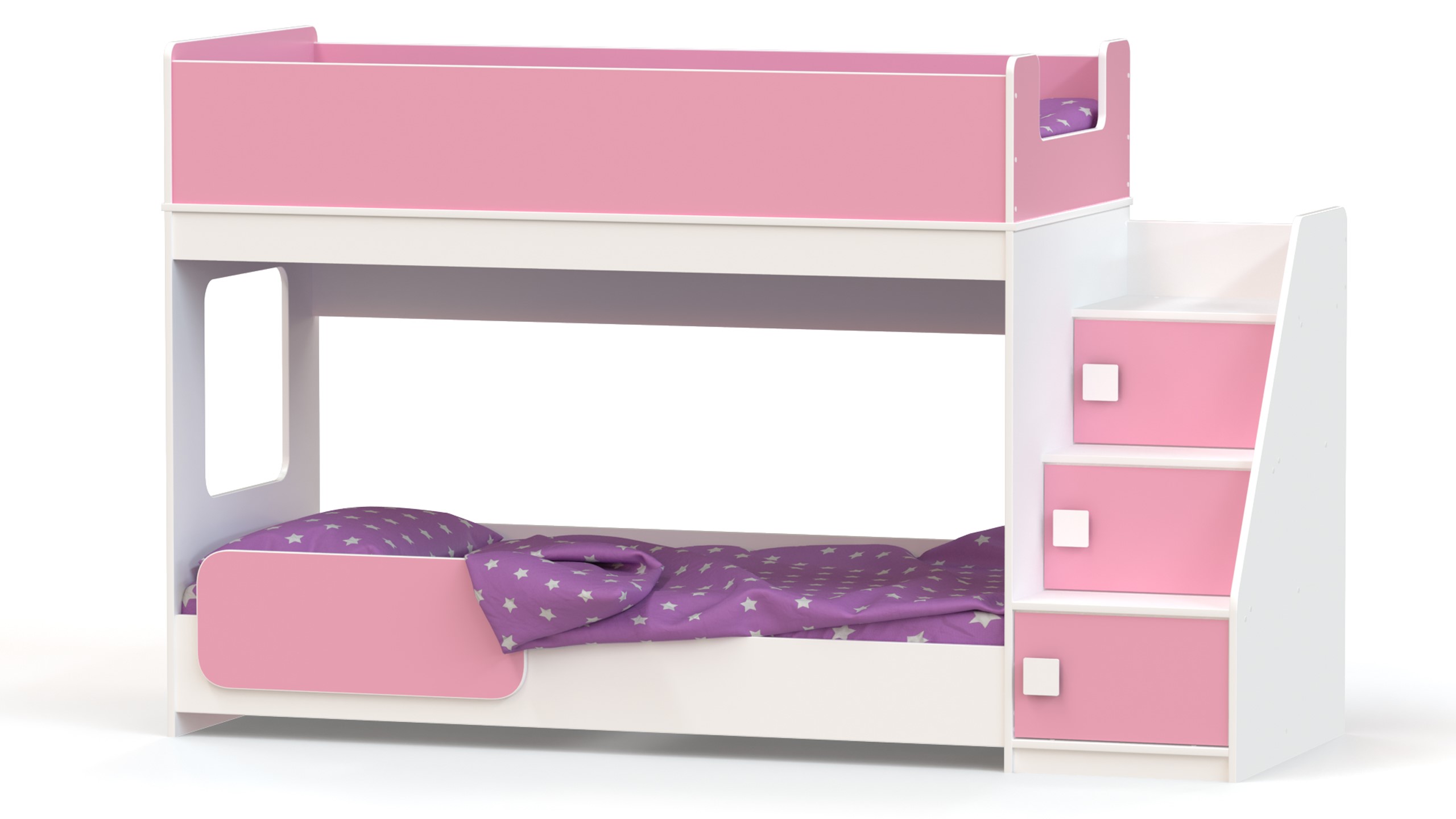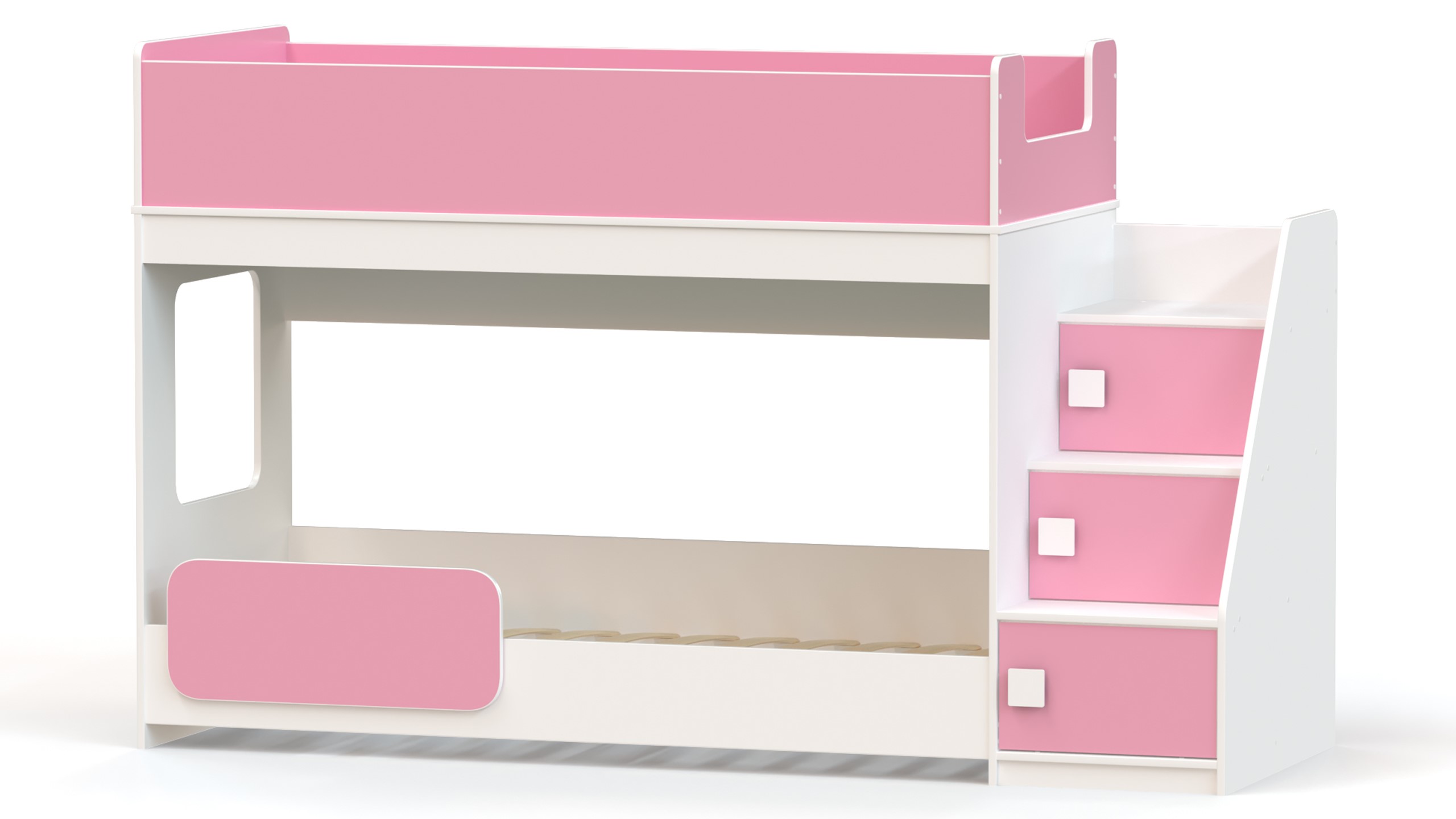 Кровать двухъярусная с угловой лестницей Ridgimmi 4.3 (Белый/Розовый)