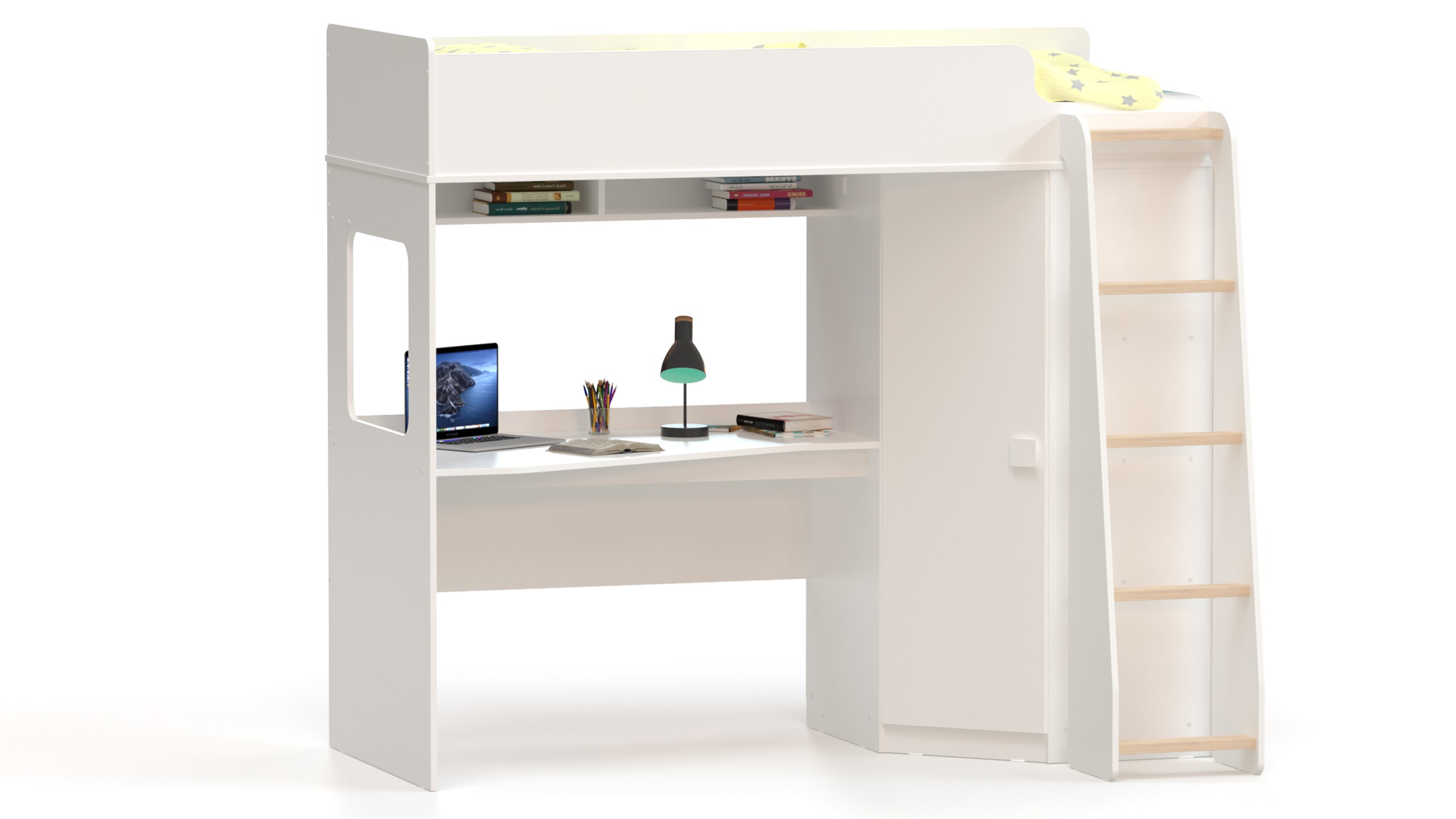Учебная зона со столом под спальным местом открывает возможности для письменных работ, а также здесь удобно расположить ноутбук.