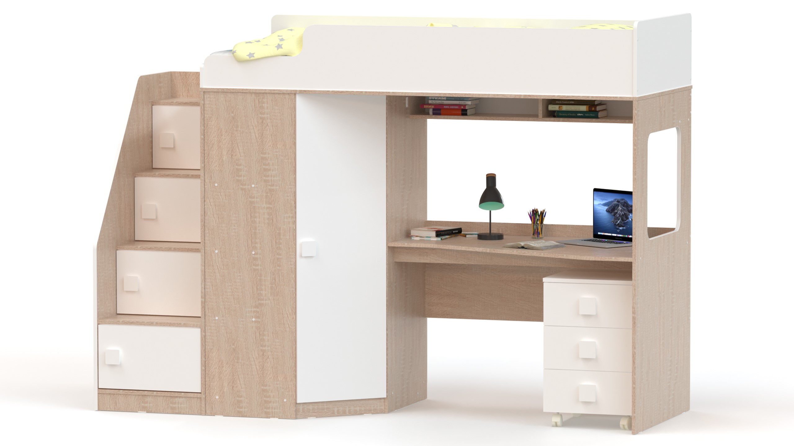 Учебная зона со столом под спальным местом открывает возможности для письменных работ, а также здесь удобно расположить ноутбук.