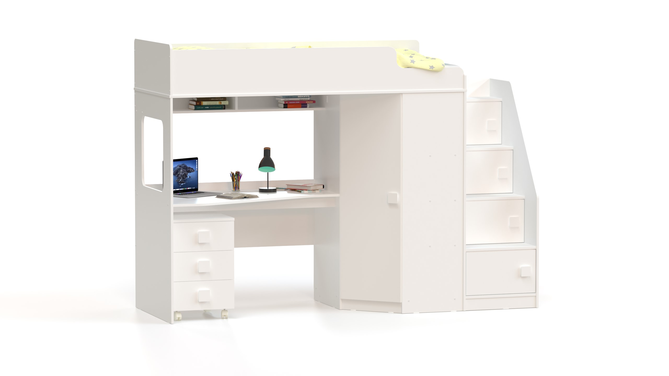 Учебная зона со столом под спальным местом открывает возможности для письменных работ, а также здесь удобно расположить ноутбук.