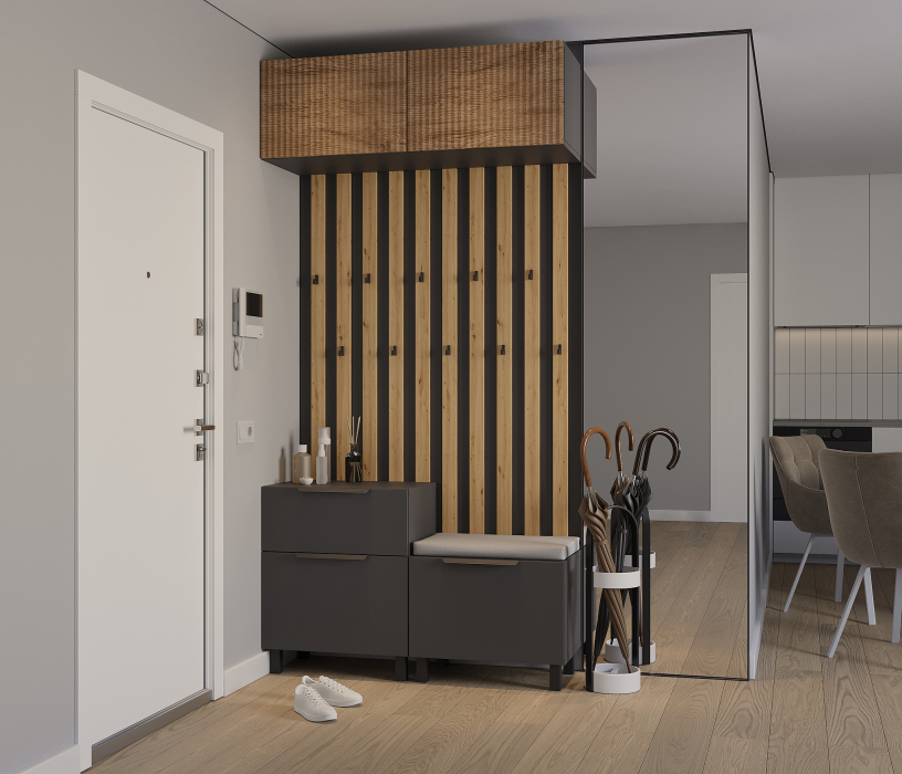 Отзывы о Столплит Прихожая Тренд с антресолью и рейками Диамант серый/МДФ Джаз Акация светлая