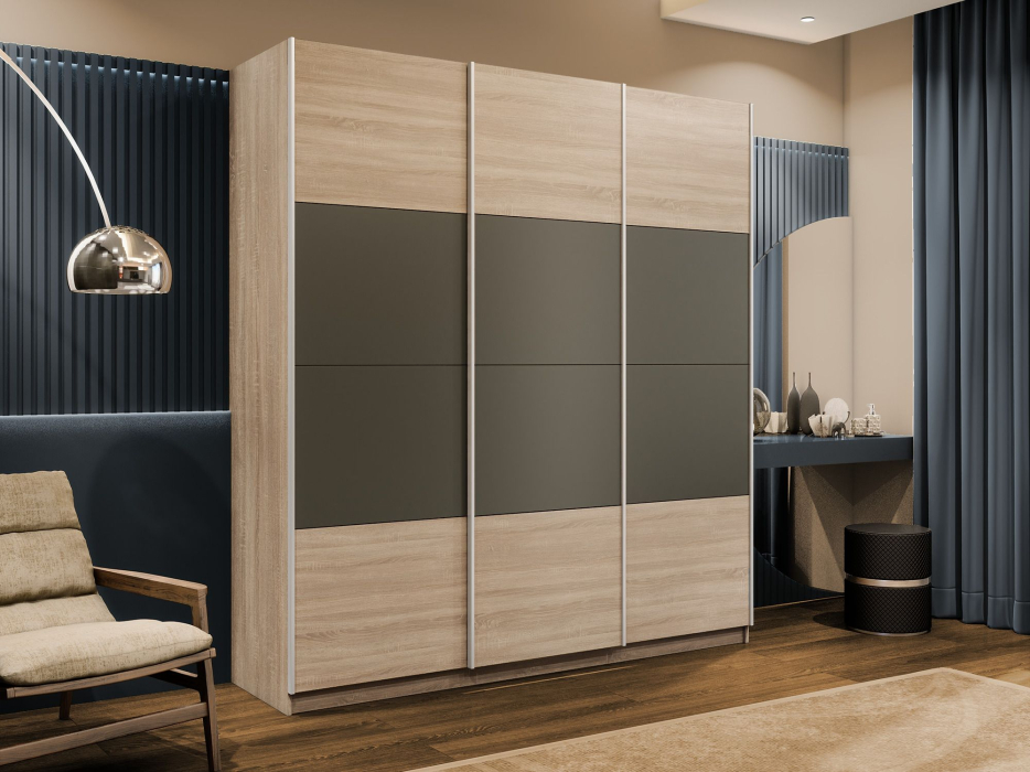 Отзывы о Столплит Шкаф-купе Эста 3-х дверный ДСП/Стекла хаки/Доводчик 300х66х240 Дуб Бардолино