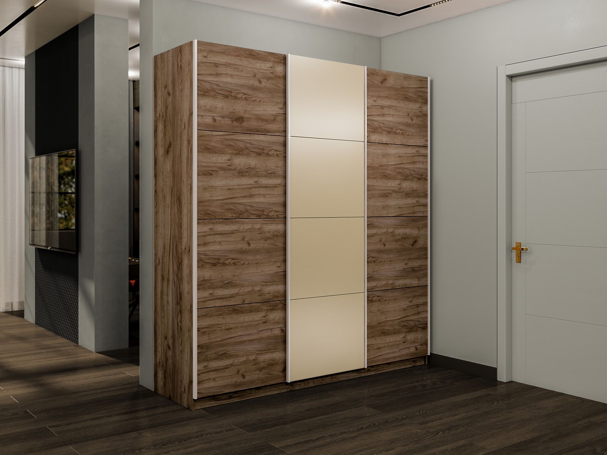 Шкаф-купе Эста 3-х дверный ДСП/Стекла фисташка/Доводчик 270х66х240 (Дуб/крафт/табак)