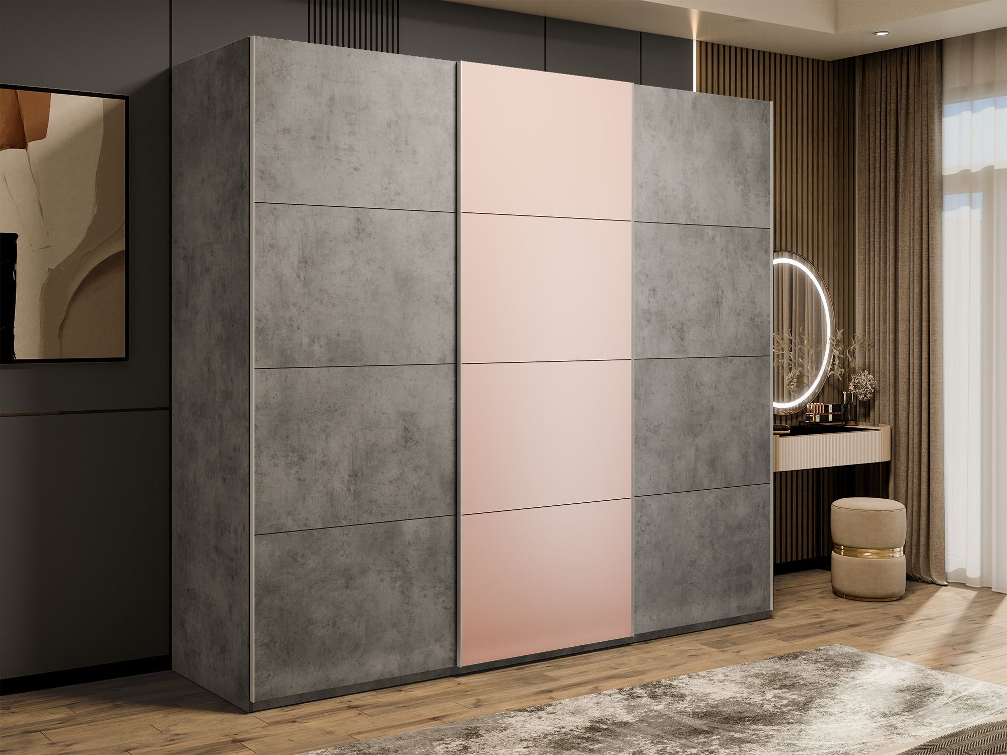 Отзывы о Столплит Шкаф-купе Эста 3-х дверный ДСП/Стекла пудра/Доводчик 300х66х240 Бетон