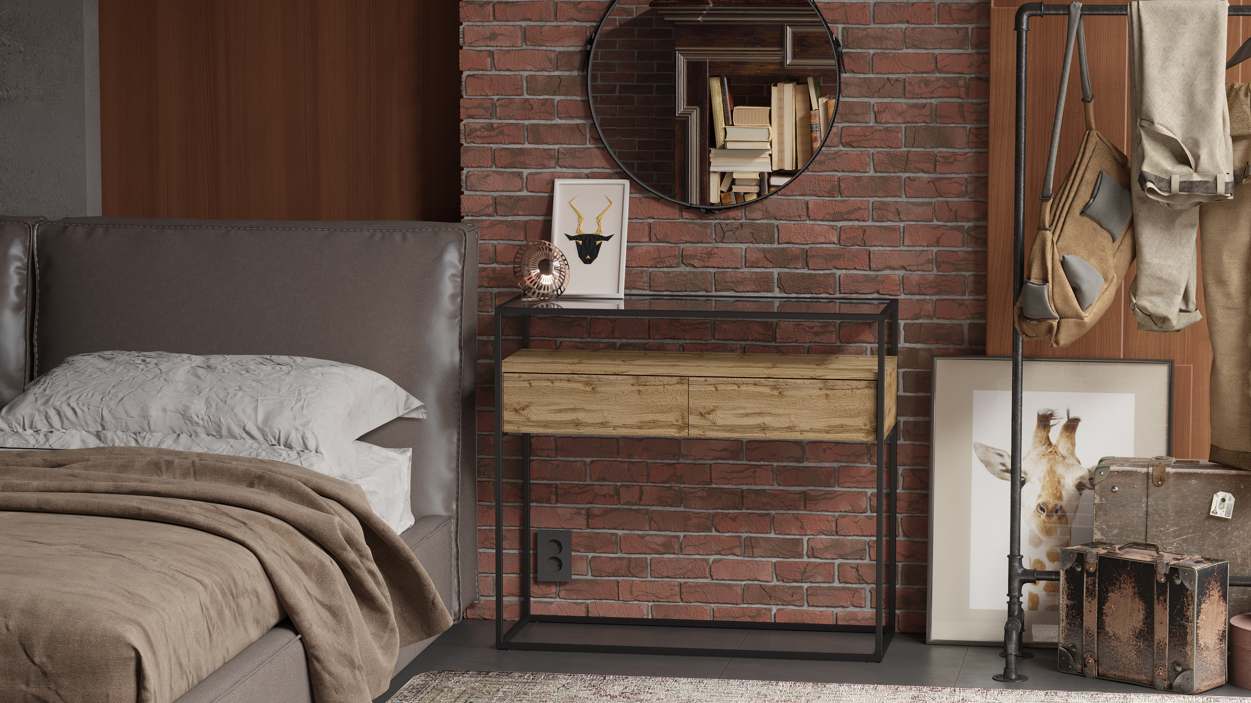 Консоль «Эйден» выполнена в современном лаконичном стиле и уместно дополнит интерьер спальной комнаты или прихожей. Стильная консоль приковывает внимание прежде всего своим исполнением: комбинацией используемых материалов. Стеклянная столешница из тонированного закаленного стекла в сером цвете дополнена полкой и ящиками для удобного хранения подручных вещей с системой открывания PUSH-TO-OPEN. А прочный металлический профиль толщиной 15 мм обеспечивает высокую прочность и устойчивость. Цветовое решение консоли можно выбрать из вариантов предложенных нашей фабрикой. Дизайнерский прием - возможность комбинировать с другими предметами интерьера из серии "Эйден", позволяя воссоздать атмосферу истинного комфорта и удобства.