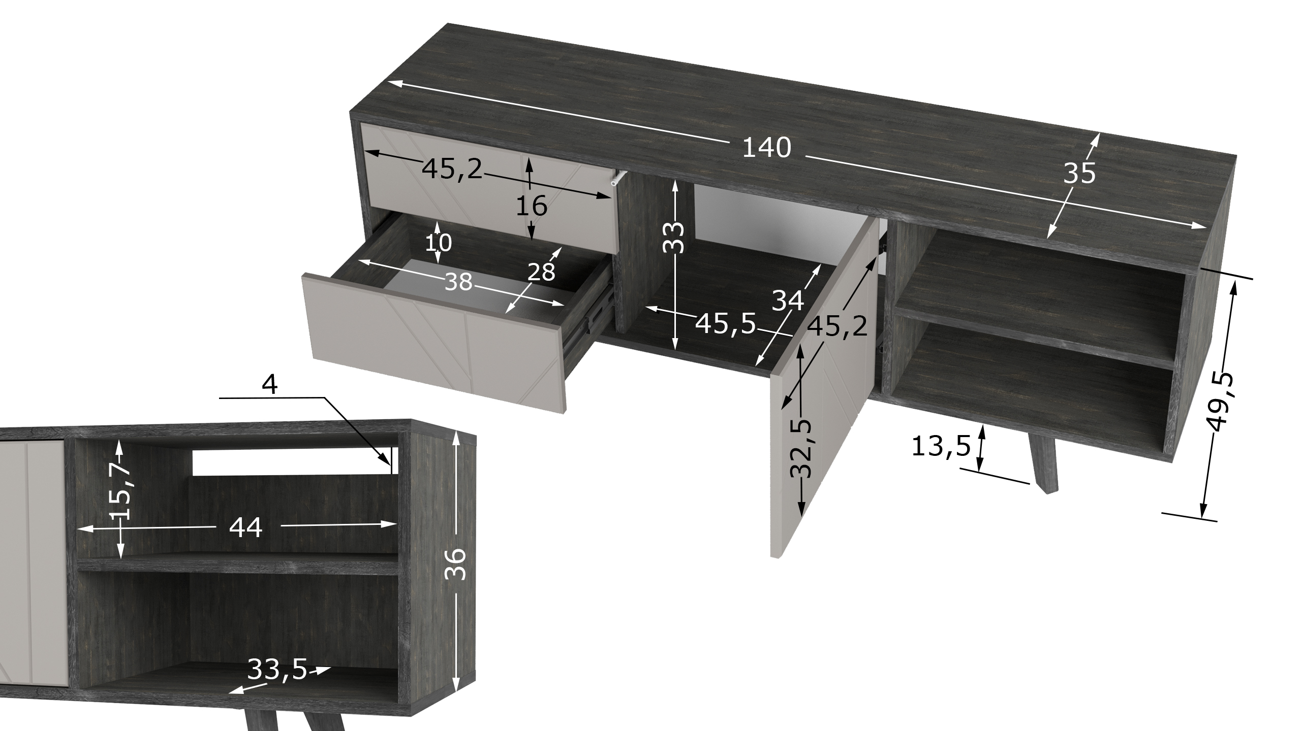 Изготовленная из высококачественных материалов, тумба под телевизор Хагги обладает долговечностью и надёжностью. Она выдерживает значительные нагрузки, что особенно важно при использовании с крупногабаритной техникой. Благодаря тщательно продуманной конструкции, тумба тв на ножках обеспечивает удобное размещение различных электронных устройств, таких как игровые консоли, медиаплееры и другие аксессуары, что делает использование телевизора ещё более комфортным. В тумбе предусмотрено несколько отделений и полок, которые помогут вам организовать порядок и избежать беспорядка в интерьере.