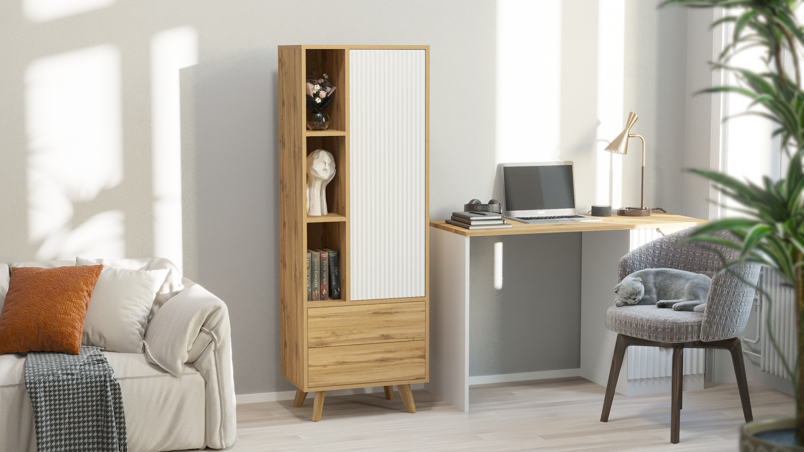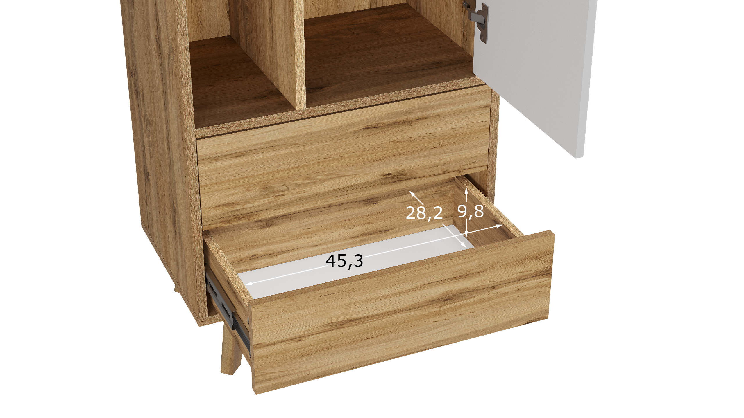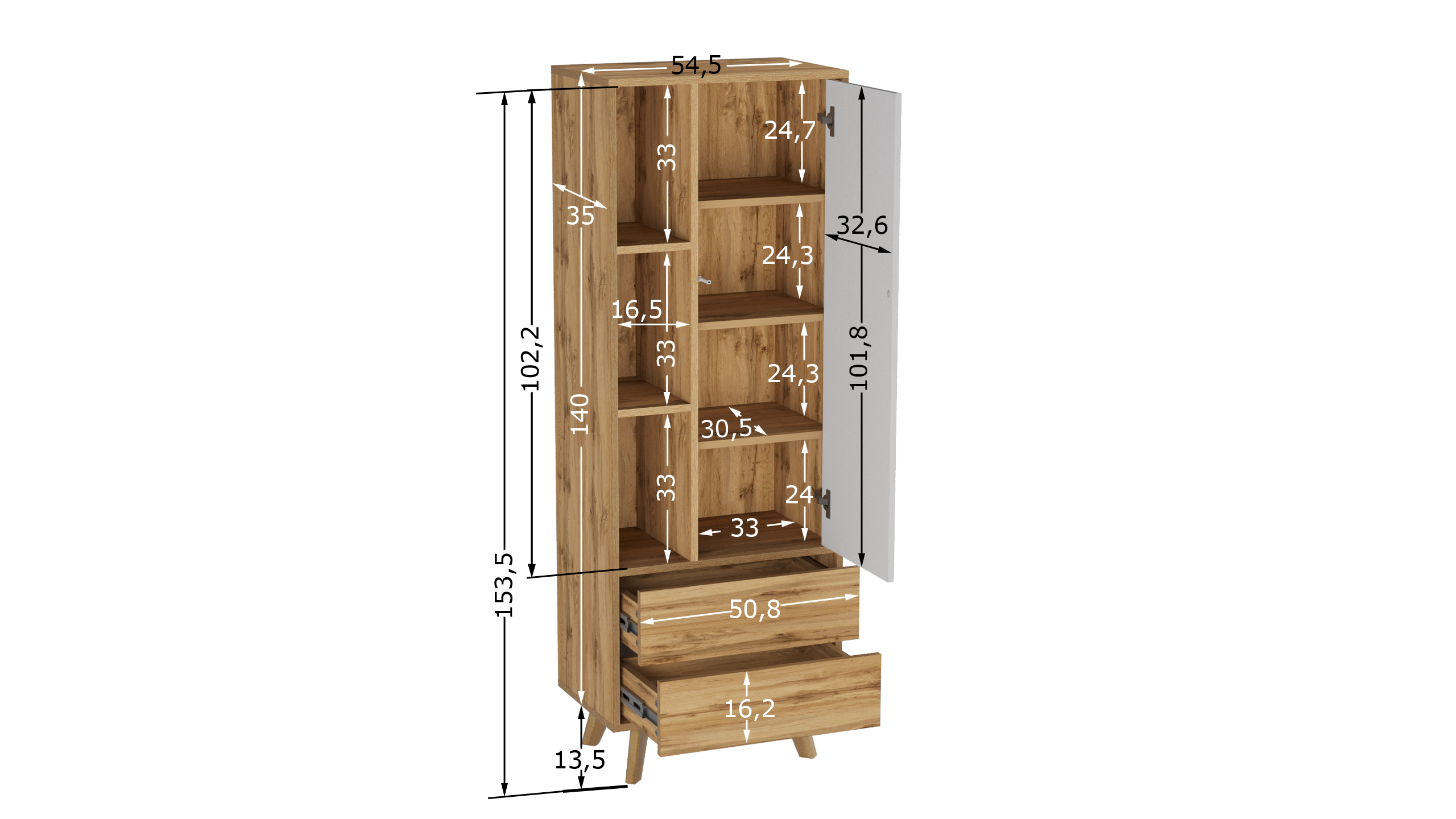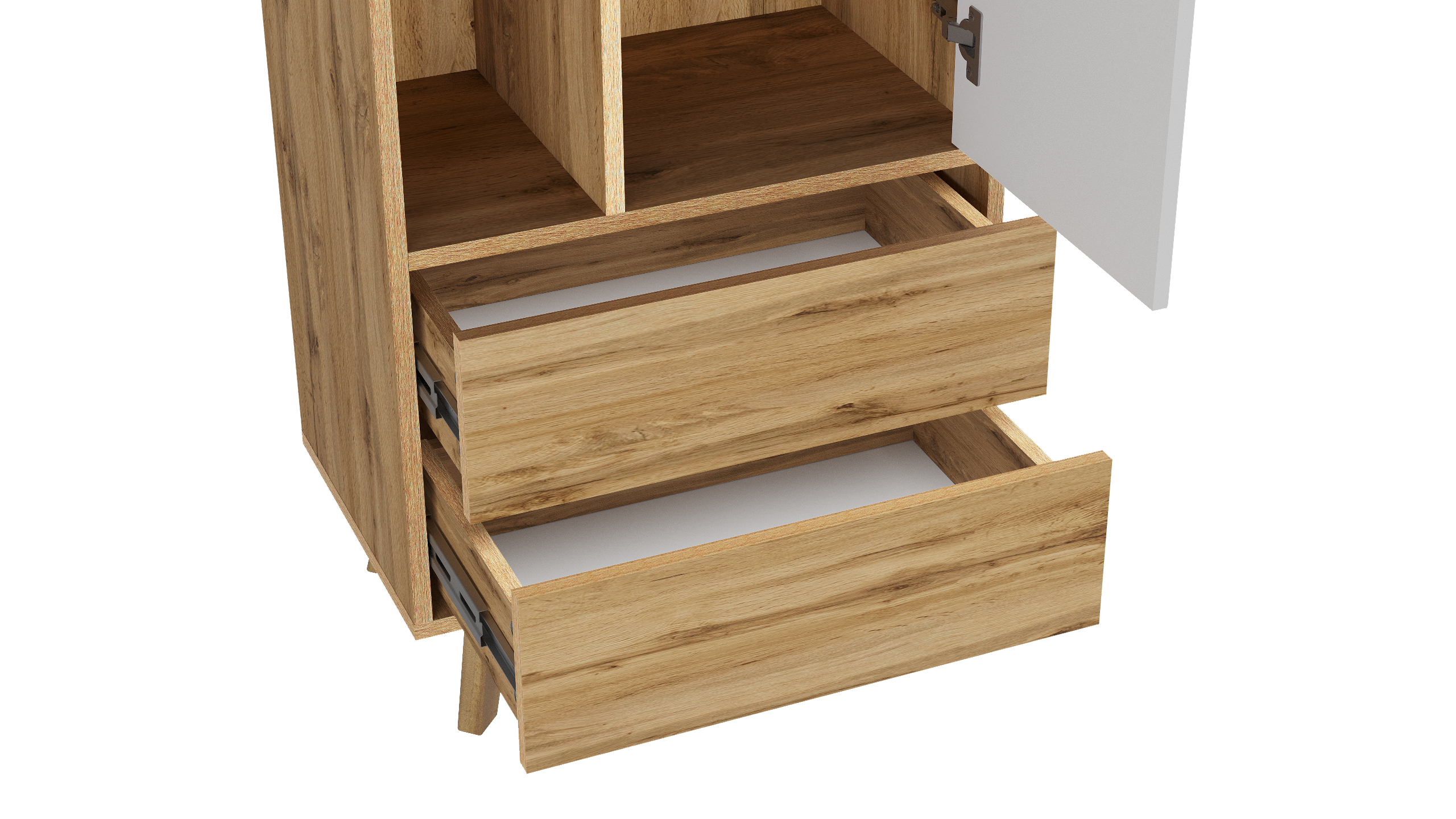 Шкаф выполнен из высококачественных материалов, что гарантирует его долговечность и надежность. Современный дизайн сочетается с практичностью, предлагая достаточное количество места для хранения одежды, аксессуаров и других вещей. Внутреннее пространство шкафа Хагги S продумано до мелочей: здесь предусмотрены полки различной высоты, выдвижные ящики, что позволит вам легко организовать свои вещи.