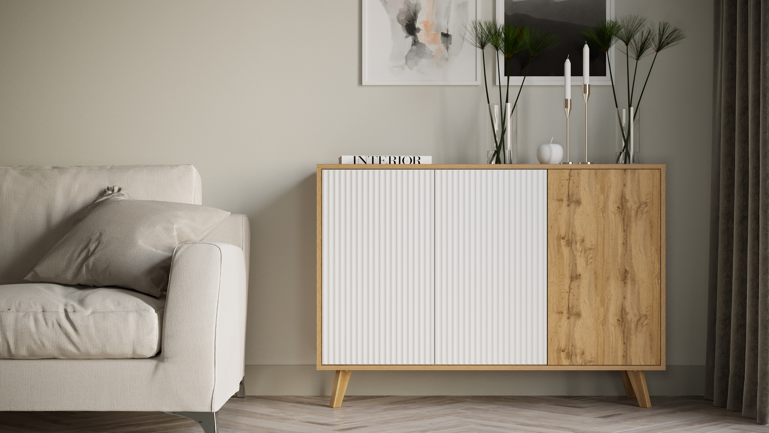 Выбирайте шкаф низкий "Хагги М" ЛДСП дуб вотан/белый и наслаждайтесь его качеством и функциональностью в вашем интерьере.