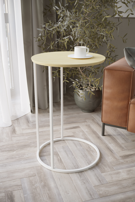 Лофт-это стиль, который прекрасно подойдет для практичных людей. А стол, выполненный в таком стиле, станет замечательным дополнением любого интерьера. Конструкция придиванного столика "Остин" позволяет расположить столешницу прямо над диваном или боковиной дивана, что достаточно удобно и функционально. Данный предмет мебели в декоре лофт будет отличаться лаконичной простотой, без излишеств. Цветовая гамма столешницы с декоративным скосом в цвете дуб янтарный прекрасно гармонирует с подстольем в белом цвете. Благодаря габаритным размерам 450*450*705 мм стол "Остин" можно с легкостью расположить в пространстве гостиной или офиса.