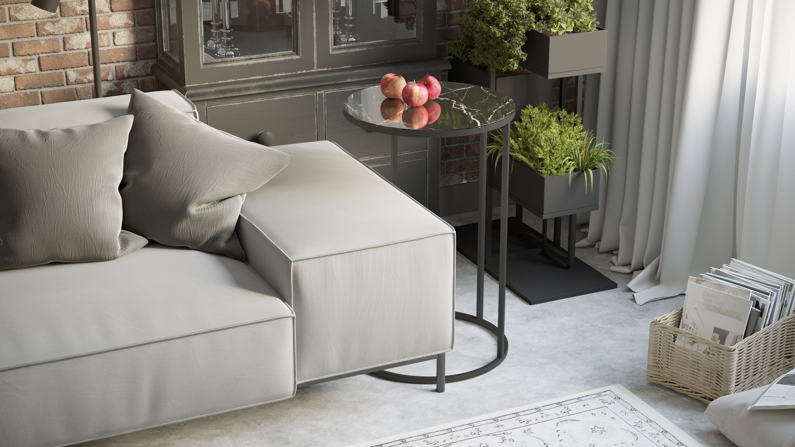 Лофт-это стиль, который прекрасно подойдет для практичных людей. А стол, выполненный в таком стиле, станет замечательным дополнением любого интерьера. Конструкция придиванного столика "Остин УФ" позволяет расположить столешницу прямо над диваном или боковиной дивана, что достаточно удобно и функционально. Данный предмет мебели в декоре лофт будет отличаться лаконичной простотой, без излишеств. Техническая виртуозность исполнения столешницы подчеркивается яркой УФ печатью в эксклюзивных цветах, благодаря чему данная модель приобретает визуальную утонченность. Цветовая гамма столешницы из закаленного стекла с УФ печатью с точность передает природный рисунок в цвете зеленый мрамор или неро. Благодаря габаритным размерам 450*450*705 мм стол "Остин УФ" можно с легкостью расположить в пространстве гостиной или офиса.