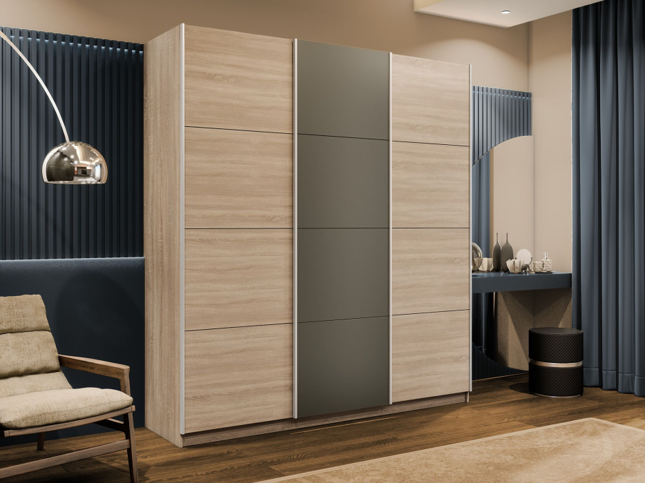 Отзывы о Столплит Шкаф-купе Эста 3-х дверный ДСП/Стекла хаки/Доводчик 300х66х240 Дуб Бардолино