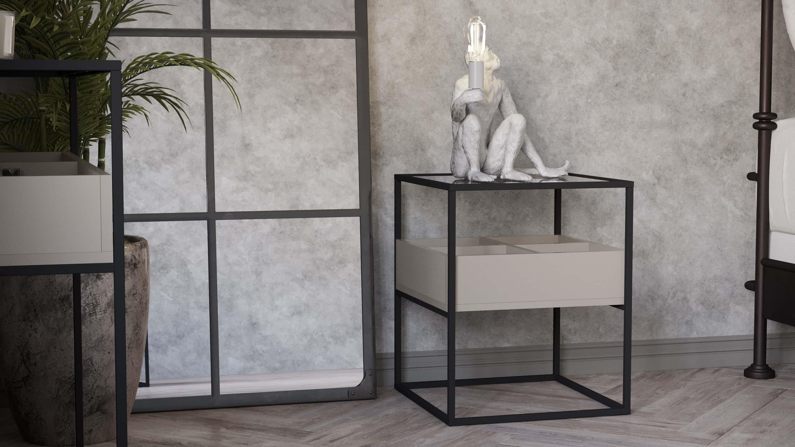 Прикроватная тумба «Кассо» выполнена в современном лаконичном стиле и уместно дополнит интерьер спальной комнаты. Стильная тумба приковывает внимание прежде всего своим исполнением: комбинацией материалов. Стеклянная столешница из тонированного закаленного стекла в сером цвете дополнена ячейками из ЛДСП для удобного хранения подручных вещей. А прочный металлический каркас толщиной 15 мм обеспечивает высокую прочность и устойчивость. Цветовое решение прикроватной тумбы можно выбрать из вариантов предложенных нашей фабрикой. Дизайнерский прием - возможность комбинировать с другими предметами интерьера из серии "Кассо", позволяя воссоздать атмосферу истинного комфорта и удобства.
