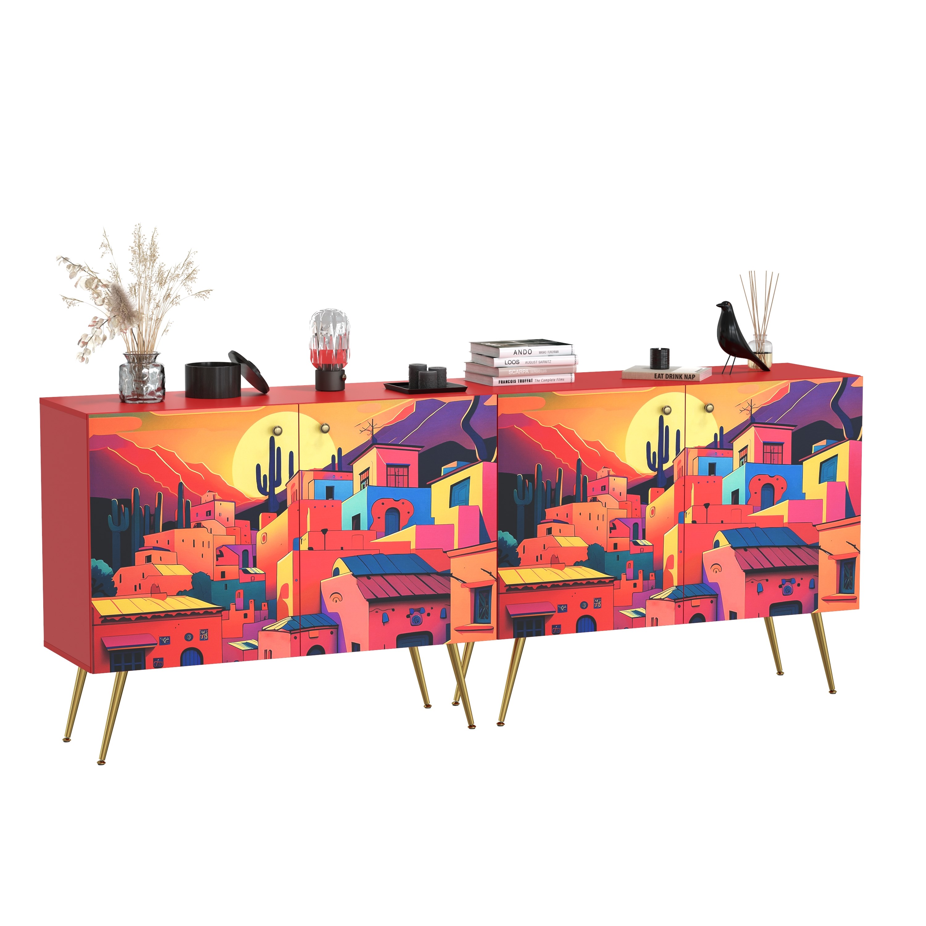 Яркая картина на фасадах Бразильские домики - лаконичная форма в сочетании с яркими теплыми цветами. Каждый комод оснащен двумя распашными дверками, скрывающими просторные отделения для хранения. Внутри комодов пространство разделено двумя полками на 4 равных отделения. Регулируемые полки - система хранения легко трансформирует внутреннее пространство под любые нужды.