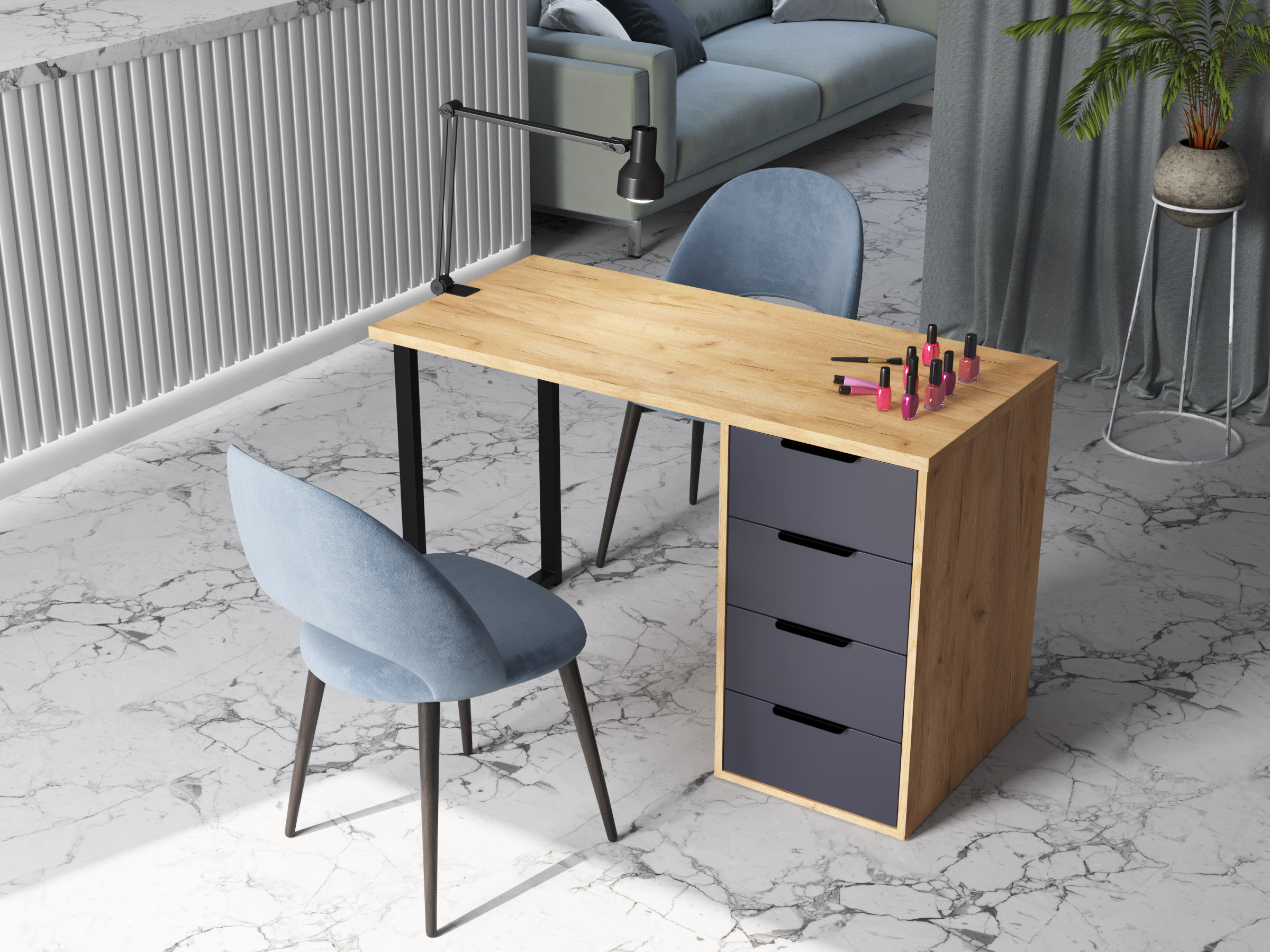 Стол письменный, компьютерный С-400 позволит создать комфортное и стильное рабочее пространство в офисе или домашнем кабинете. Стол С-400 можно использовать в качестве маникюрного стола. Стол имеет прочную стальную опору и тумбу с четырьмя выдвижными ящиками. Столешница изготовлена из ЛДСП 25 мм, фасады МДФ 16 мм. Дно ящика двп 3 мм. Стол может быть собран в зеркальном варианте «правым» или «левым». Фурнитура: телескопические направляющие полного выдвижения без доводчиков, ручки и опора металл. Стол письменный, компьютерный С-400 позволит создать комфортное и стильное рабочее пространство в офисе или домашнем кабинете. Стол С-400 можно использовать в качестве маникюрного стола. Стол имеет прочную стальную опору и тумбу с четырьмя выдвижными ящиками. Столешница изготовлена из ЛДСП 25 мм, фасады МДФ 16 мм. Дно ящика двп 3 мм. Стол может быть собран в зеркальном варианте «правым» или «левым». Фурнитура: телескопические направляющие полного выдвижения без доводчиков, ручки и опора металл.