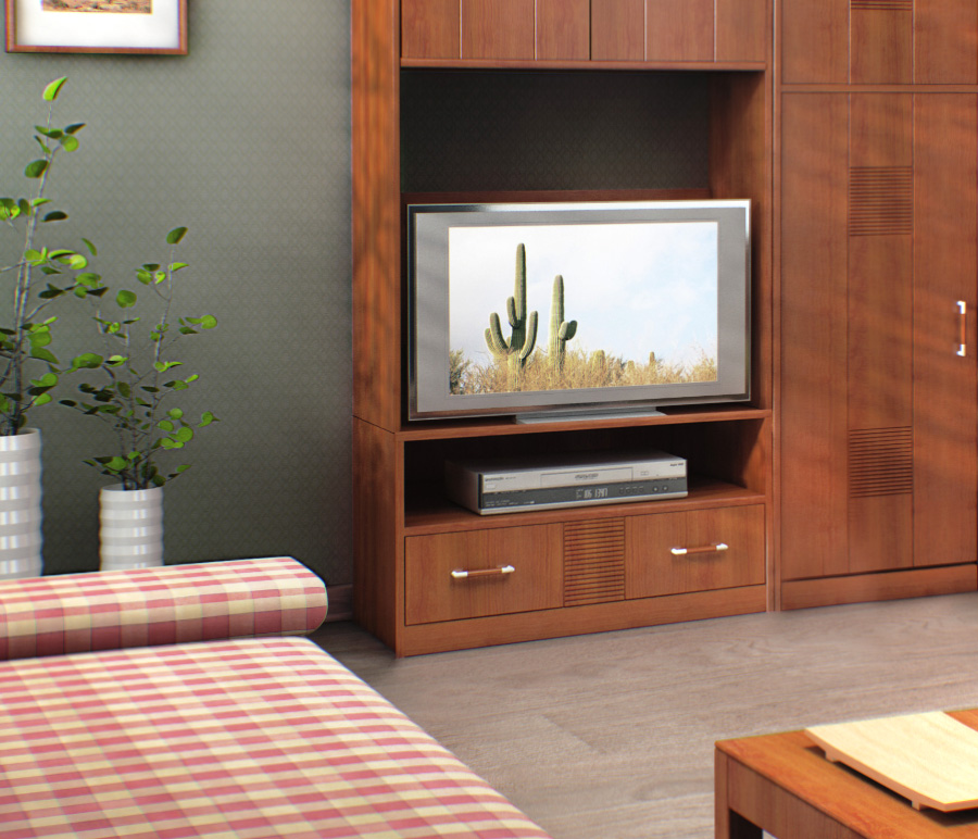 Так как плазма метровая одной было мало,купила две.Переживала за стык между ними вместе составленными и так как технику предпологалось расположить на полках ,на задней стенке нет выхода для проводов.