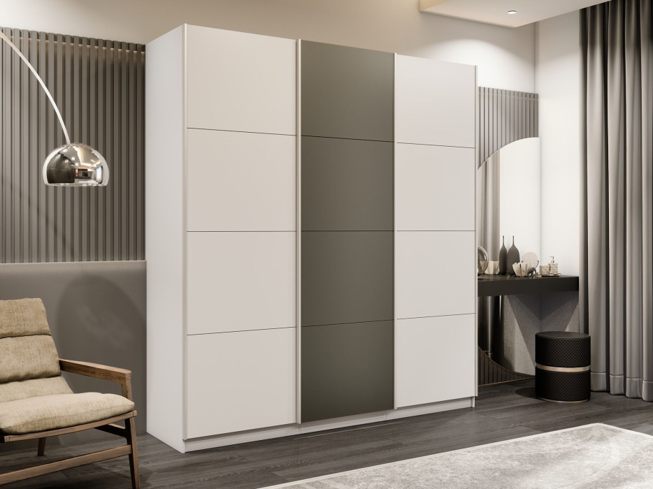 Отзывы о Столплит Шкаф-купе Прайм 3-х дверный Стекла хаки/ДСП/Доводчики 180х57х230 Белый снег