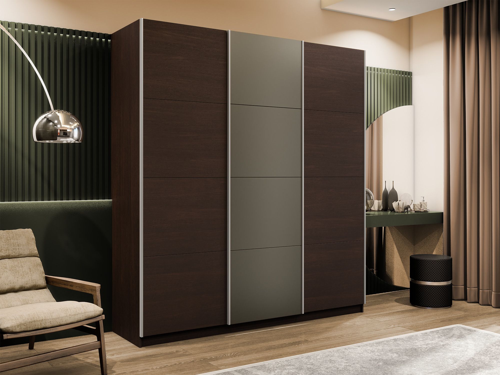 Шкаф-купе Прайм 3-х дверный Стекла хаки/ДСП/Доводчики 180х57х230 (Венге) Код I0000409071