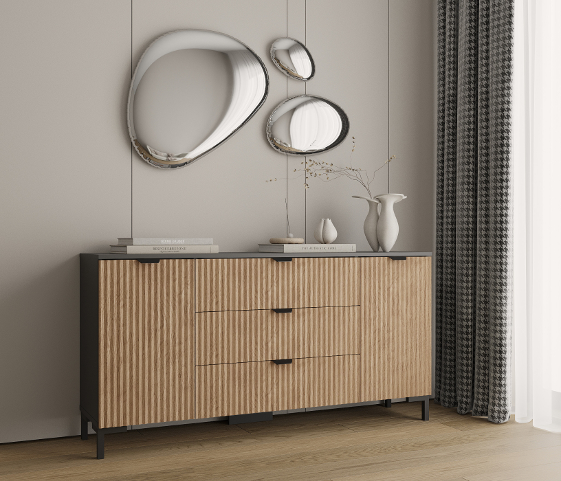 Отзывы о Столплит Комод Тренд СБ-3443 3 ящика, 2 двери Диамант серый/МДФ Джаз Акация светлая