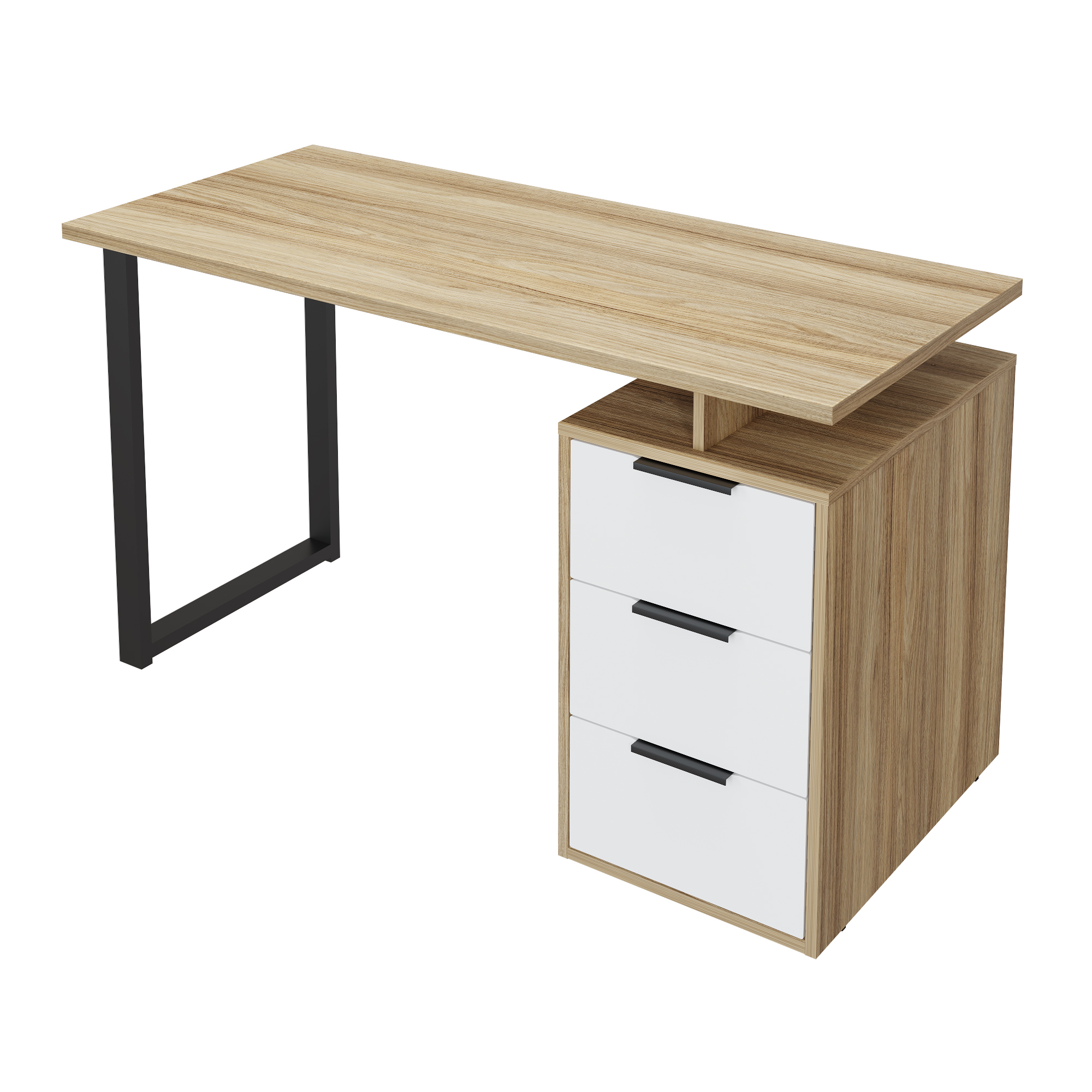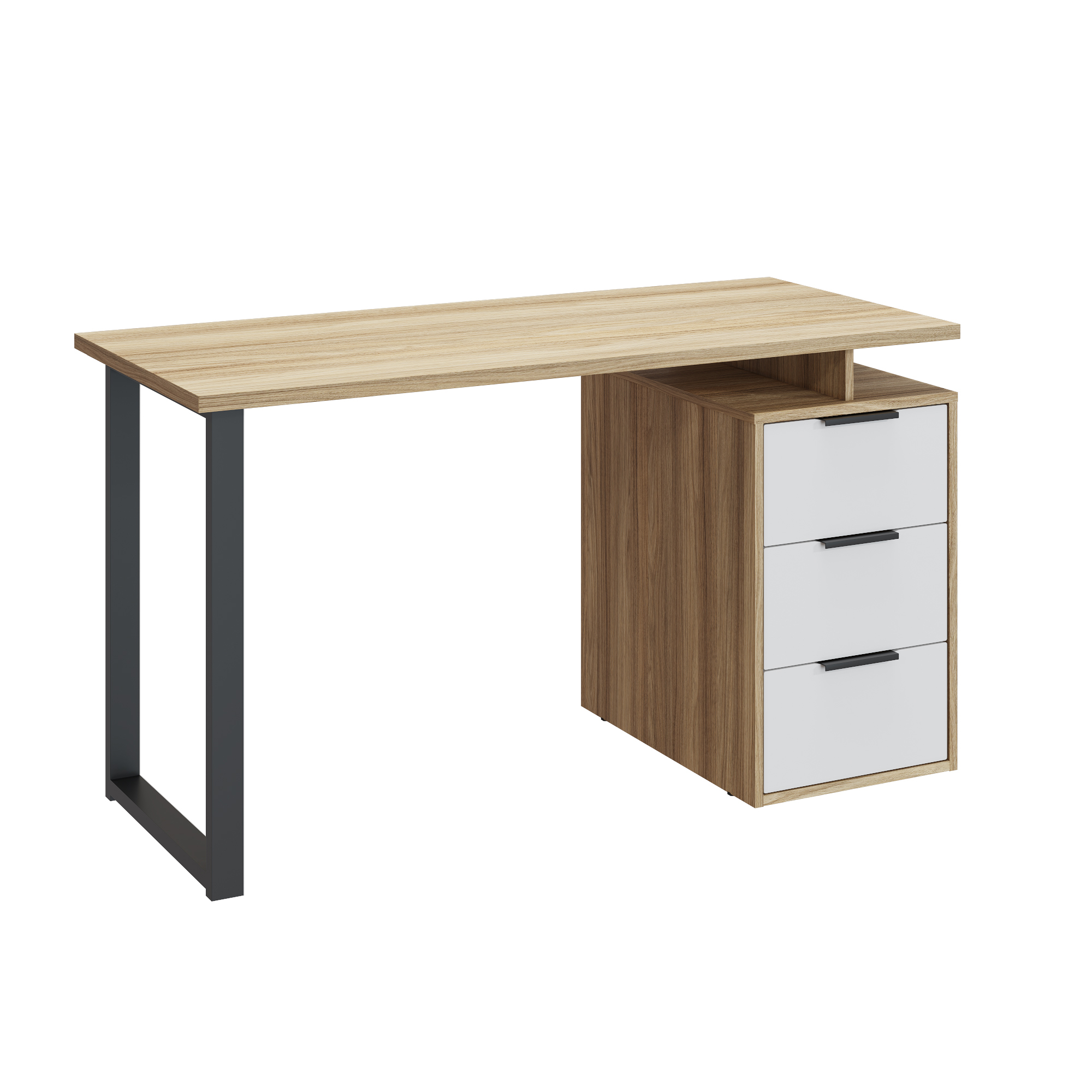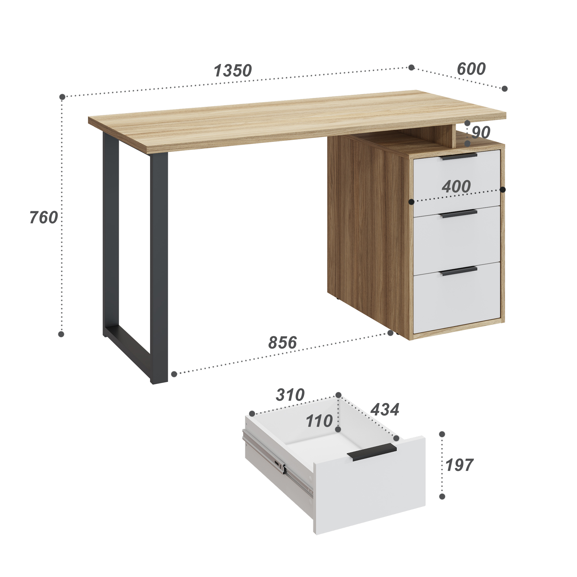 Стол письменный, компьютерный С-406 позволит создать комфортное и стильное рабочее пространство в офисе или домашнем кабинете.. Стол имеет прочную стальную опору и тумбу с тремя выдвижными ящиками и полкой для мелочей Столешница изготовлена из ЛДСП 25 мм, фасады МДФ 16 мм. Дно ящика двп 3 мм. Стол может быть собран в зеркальном варианте «правым» или «левым». Фурнитура: телескопические направляющие полного выдвижения без доводчиков, ручки и опора металл.
